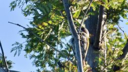 でも今朝は公園の高い木の天辺付近で2羽のアオゲラが現われ~1羽だけでかなり遠くで証拠写真にもならない様な物ですが一様~撮れました…(笑)……