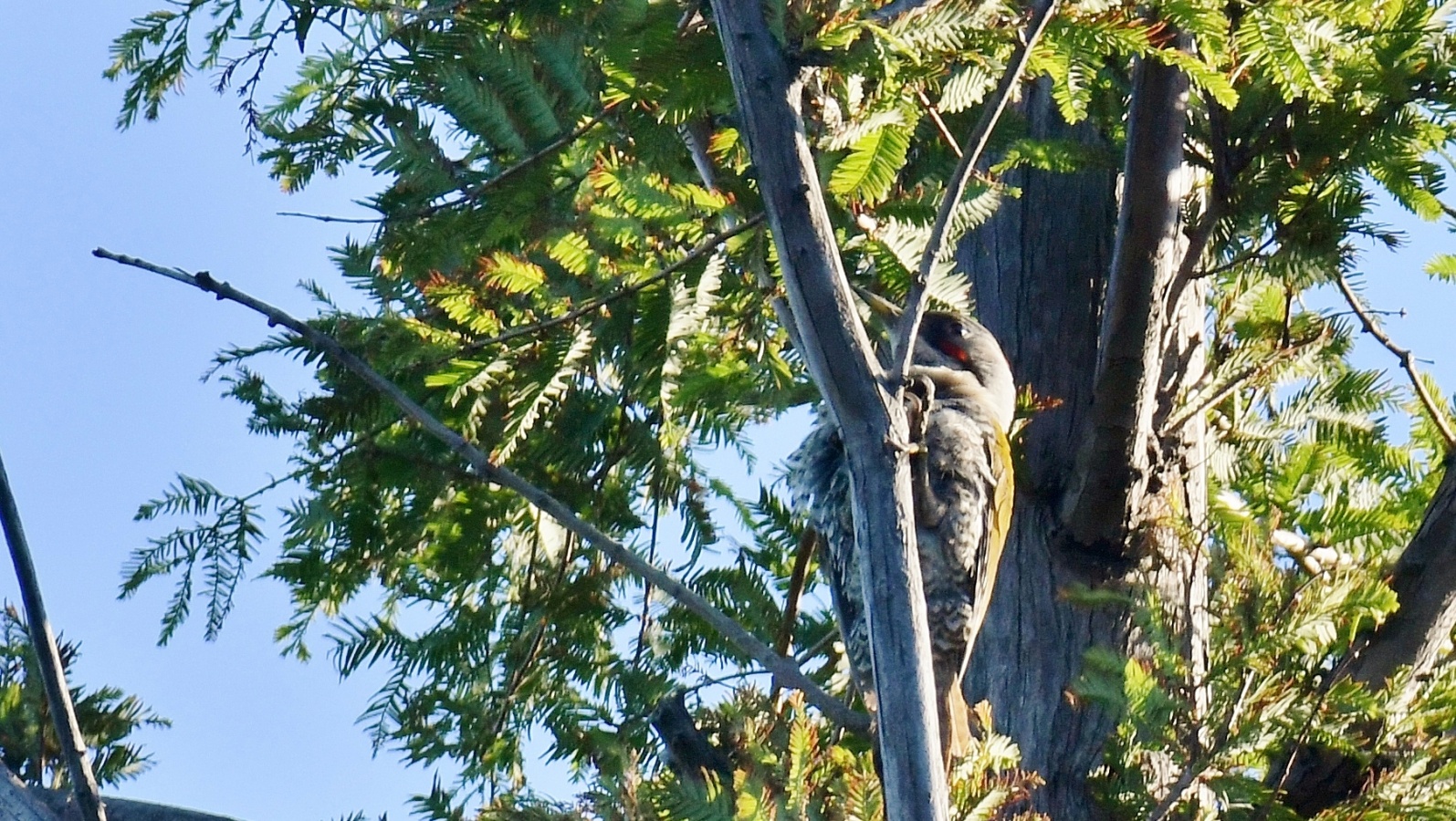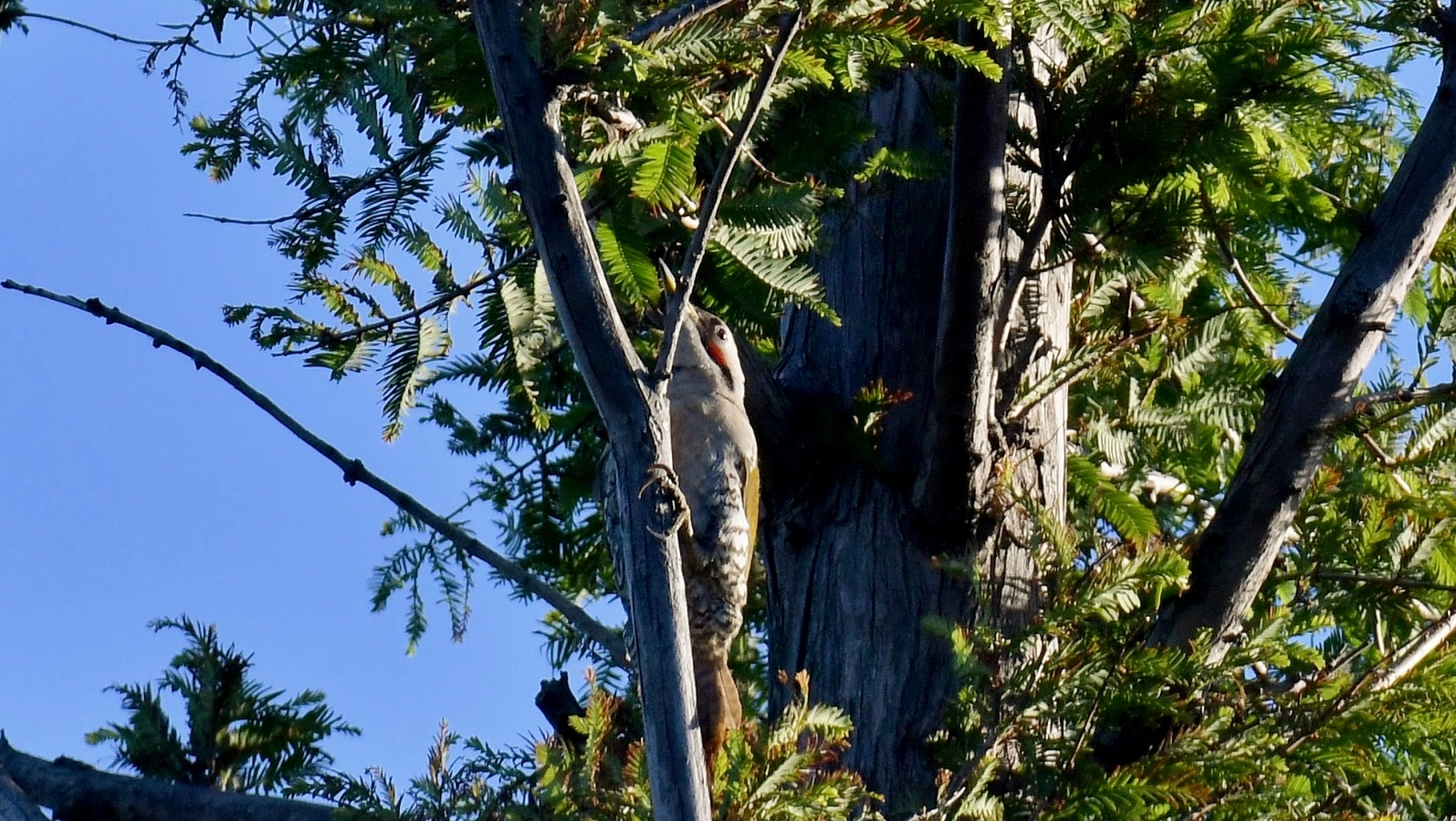 多分この2羽は以前も公園の遊水地の5~6mの近い所で撮らせてくれたアオゲラだと思います。 何時も2羽で居る事から多分”カップル……?
