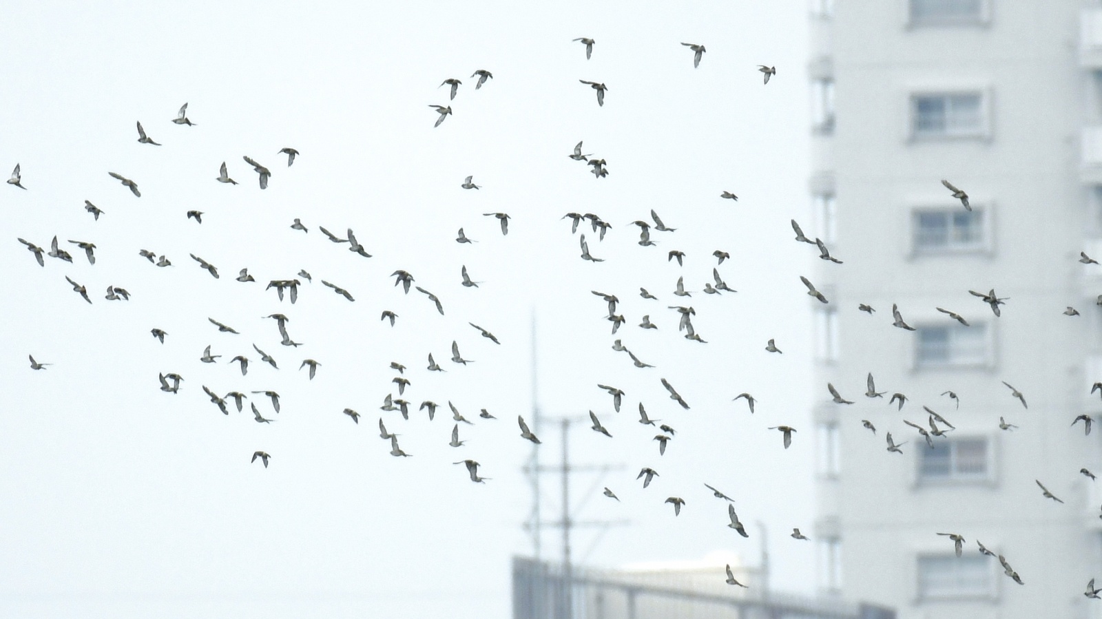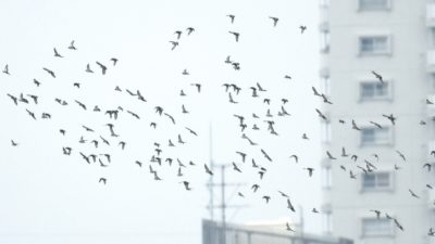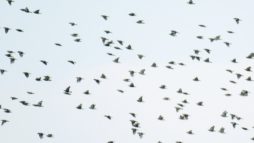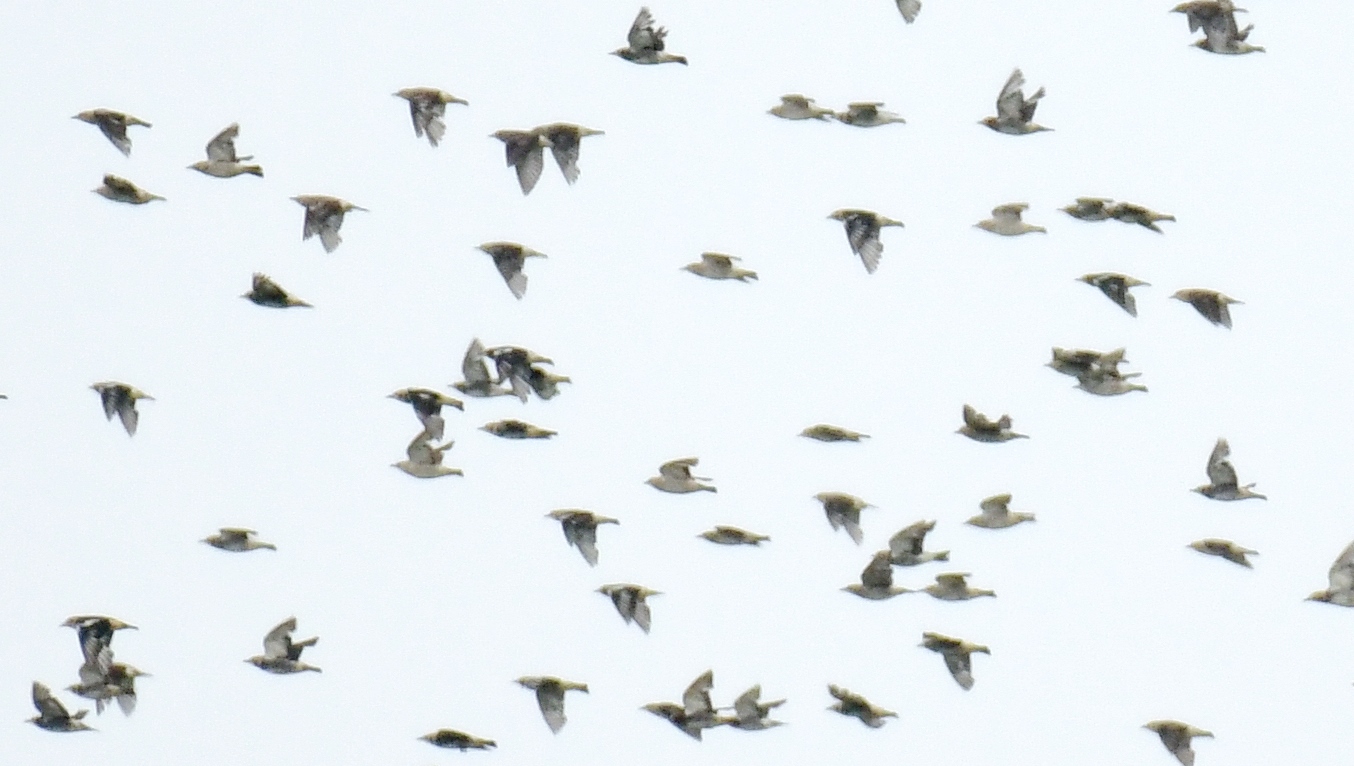 普通のガビチョウと2羽で行動していたガングロガビチョウ…… そしてまだ沢山居て…後で遠くに飛んでいた群れを確認したら150羽以上の群れで飛んでいたコムクドリ等……。