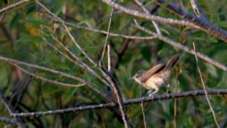 今朝は少し風があって、昨日と比べれば雲泥に涼しく感じる楽な早朝散歩と鳥撮りでしたが、その後昼前から又かなり暑くて……。  今朝もまたコムクドリの集団が何組も現われ……毎日結構な数です!だいぶパターンも判ってきたし、明日は暑さを我慢して少し近くで撮ろうかなぁ~♪ はたして近くで撮れるかは判りませんが!  先日撮った(日曜日)多分”セッカだと思うのですが~? 幼鳥らしく6~7羽で遊んでいました。 今朝も見れるかと思ったのですが……現われません!