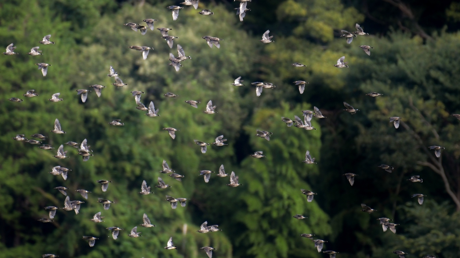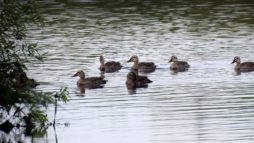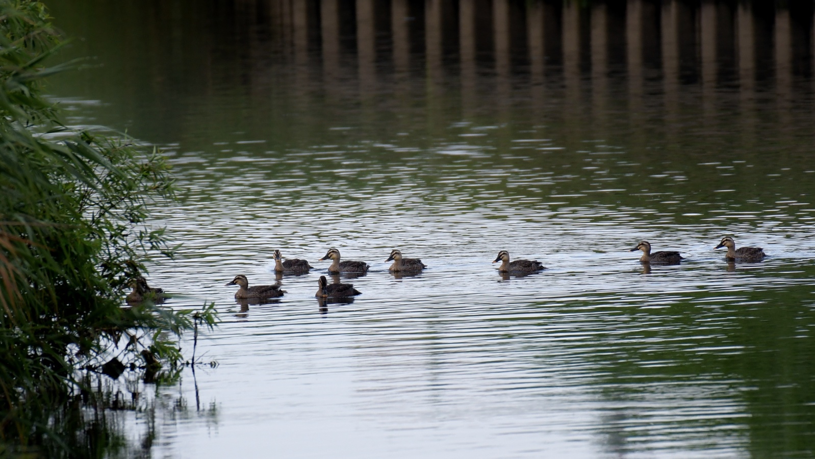 ◎13羽のカルガモはけさも元気で連なっていました。~♪