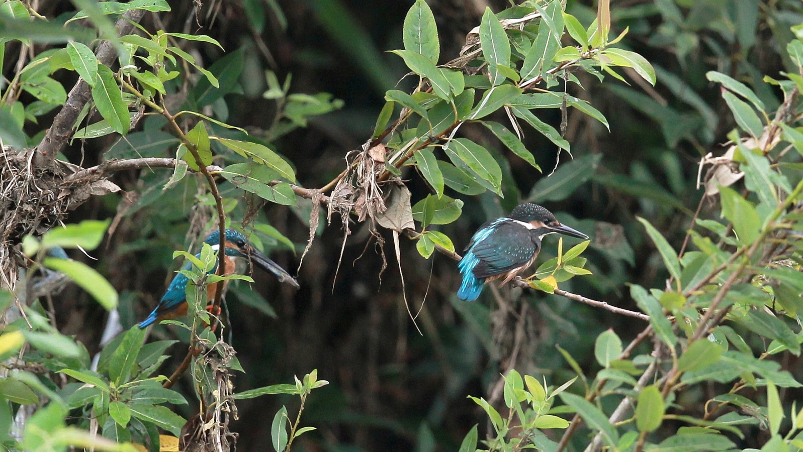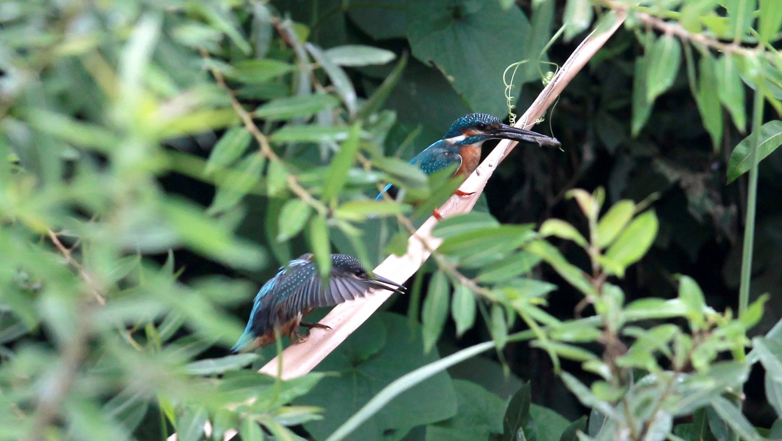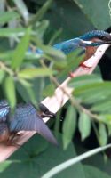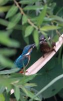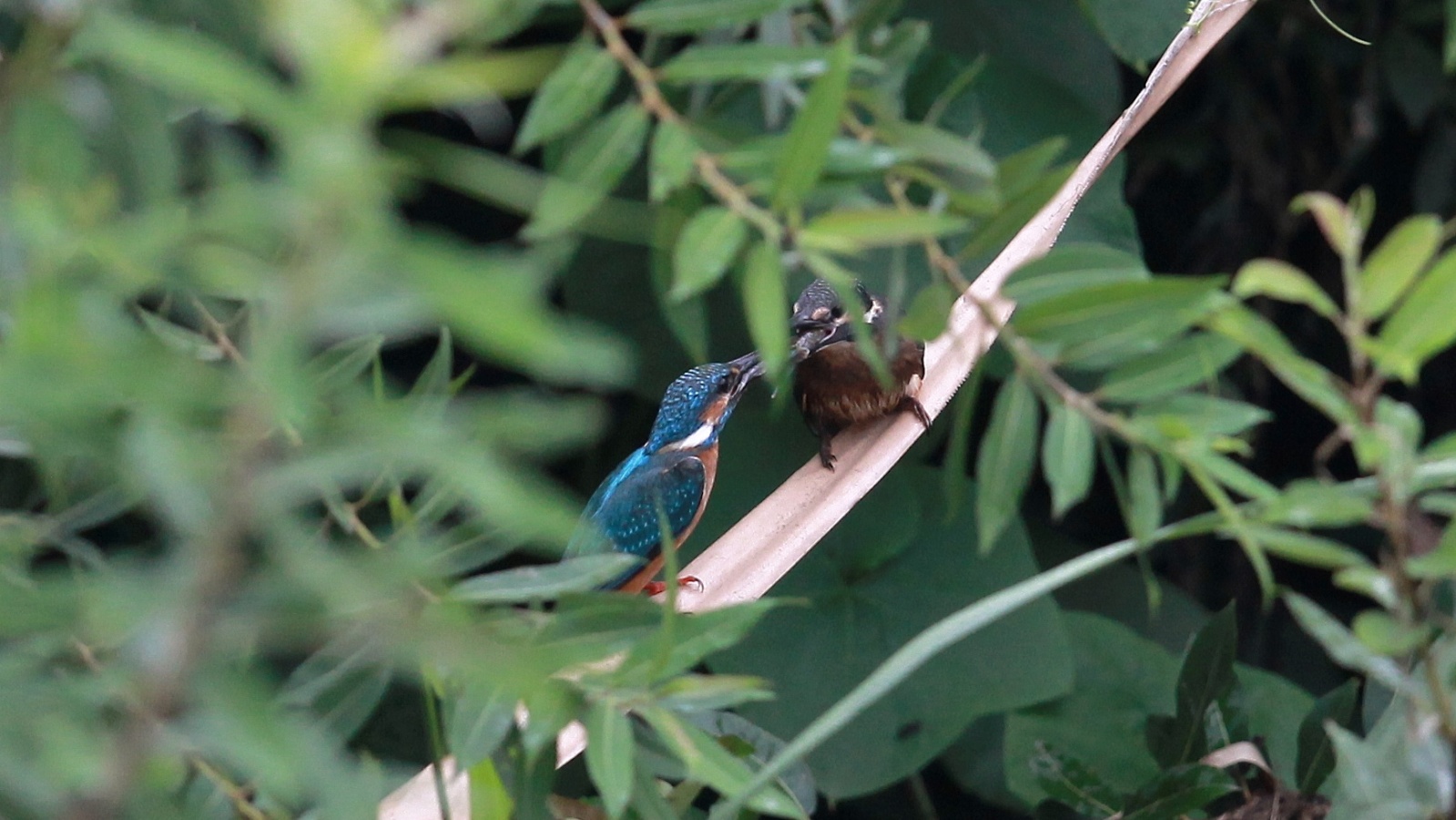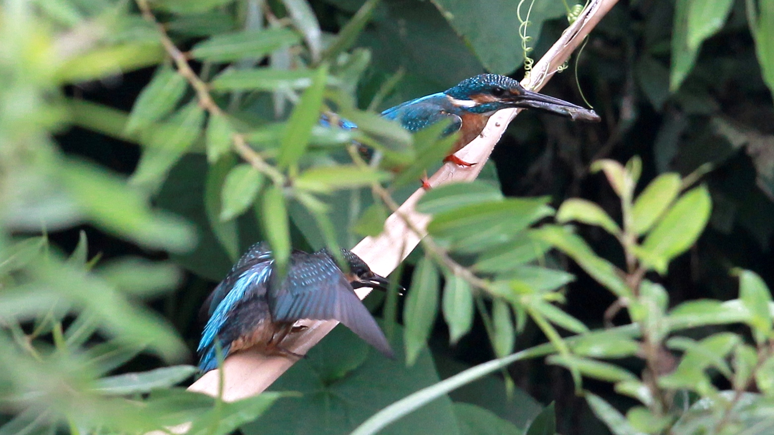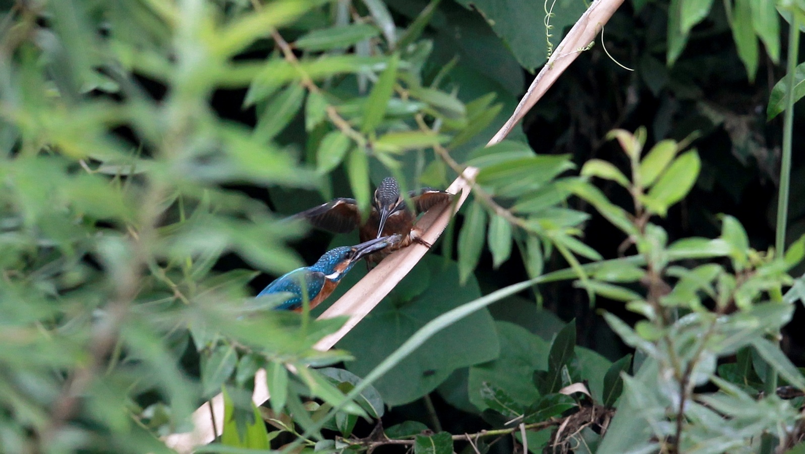 公園より上流で翡翠の3番子が出ているのは知っていたのですが日当たりの良過ぎるフィールででなかなか行かれずに、やっと昨日少しは涼しかったので行ってみました~♪ もうだいぶ雛達もばらばらになっていて、中でも多分1番卵からかえったのが遅かったのでしょう~だいぶ黒くて飛ぶのも少しもたもたして、川への飛び込みもヘタクソ!~(笑) 枝から枝に飛び移れずに落っこちたりと~(爆)ずぶ濡れになって親からの給餌を待っているのですが、親鳥も少しでも早く様にと独り立ちを促すようになかなかお魚をくれません……。 チョット”可哀想な感じですがこれも自然界!頑張って育っていくのでしょう~♪