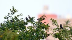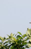 又ぶり返してしまったこの暑さ……まだまだ続きそうですが、意外と今朝は公園に行く前はムシムシの暑さで歩き始めて暫らくすると湿度が下がってきたのでしょう~?夢眠の散歩の後の鳥撮りではかいた汗のせいもあってか?風が気持ちよく~♪ それほど暑いとは感じませんでした。  今朝もガングロは声だけ聞こえて一瞬見えたものの茂みの中から出てくれずに時間切れでの撤退でした。 途中もコレいった鳥は現われず遠くのコムクドリと遠くのエナガ・遠くの木の上に居たアオサギ、飛んでいたゴイサギ・鉄塔でカラスとにらみ合っていたアオサギぐらいです。 アオサギなんか撮っているようじゃ~ネ!~(笑)