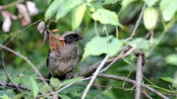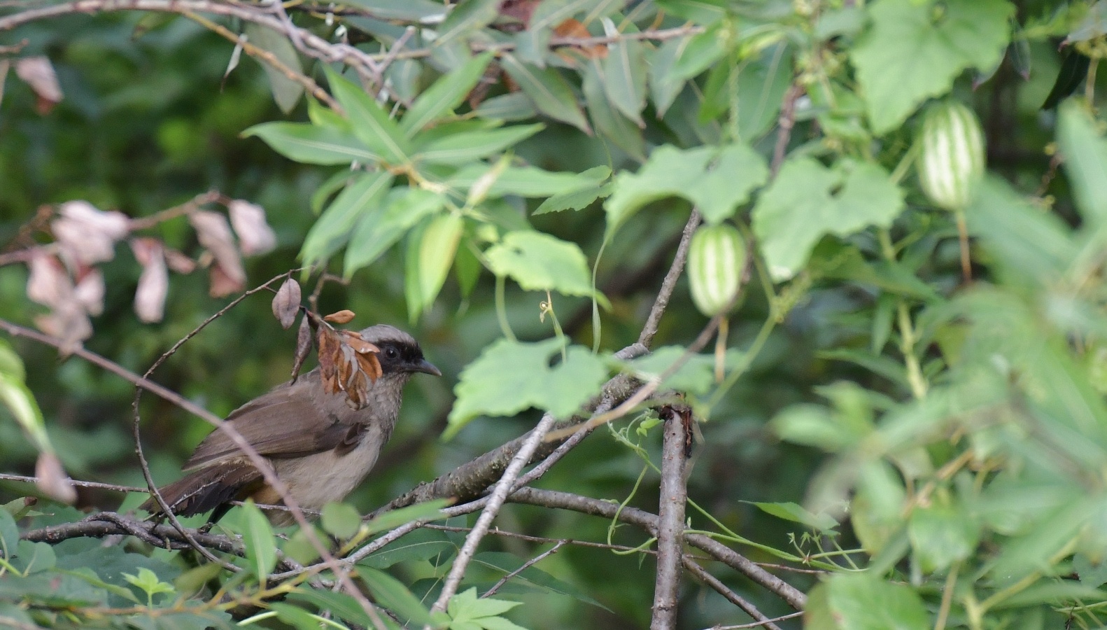 いかにも仲間を呼んでいるような鳴き方もしているのに………1回だけ2羽居たのを確認した時もほんの一瞬で、もしかしたら良く一緒に行動している普通のガビチョウを見違いてしまったのかと思うようにチョット”なってきました~(笑)