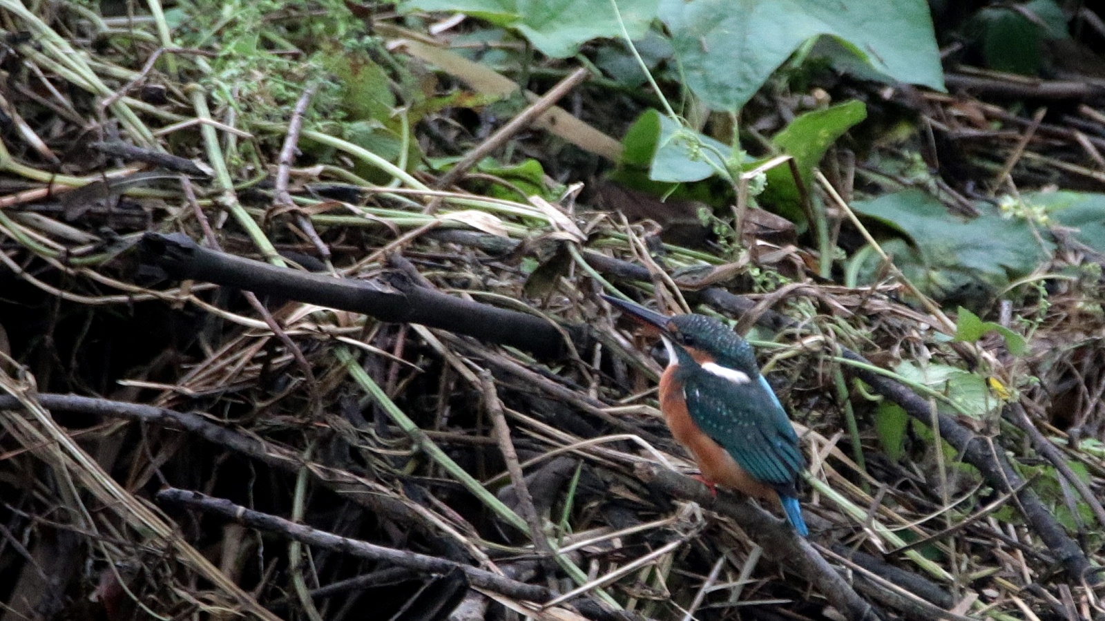 今朝の翡翠は一瞬現われてはシャッターを押す前に飛び去ってしまう事の繰り返しで…撮れたのは証拠写真で川の対岸でのたった1枚だけ!
