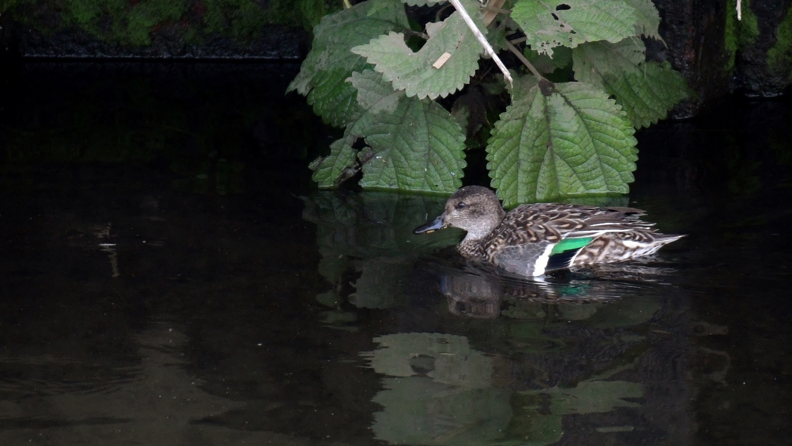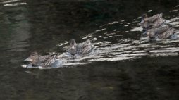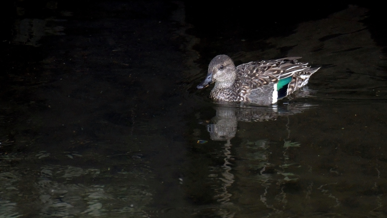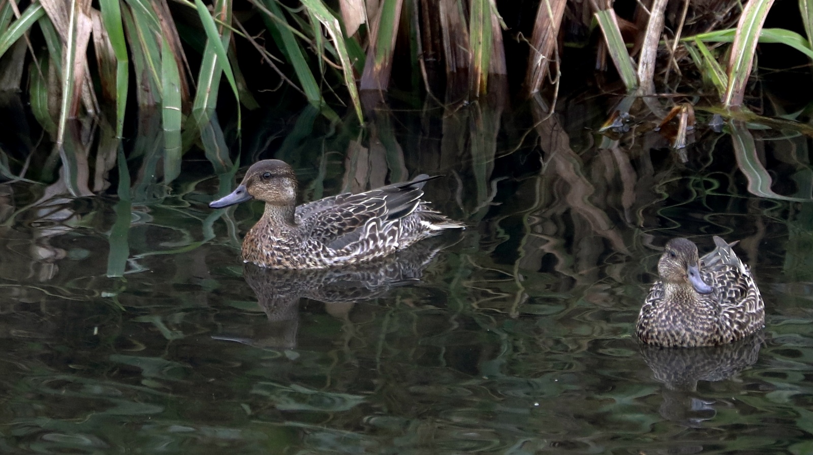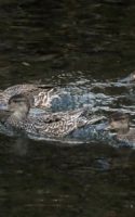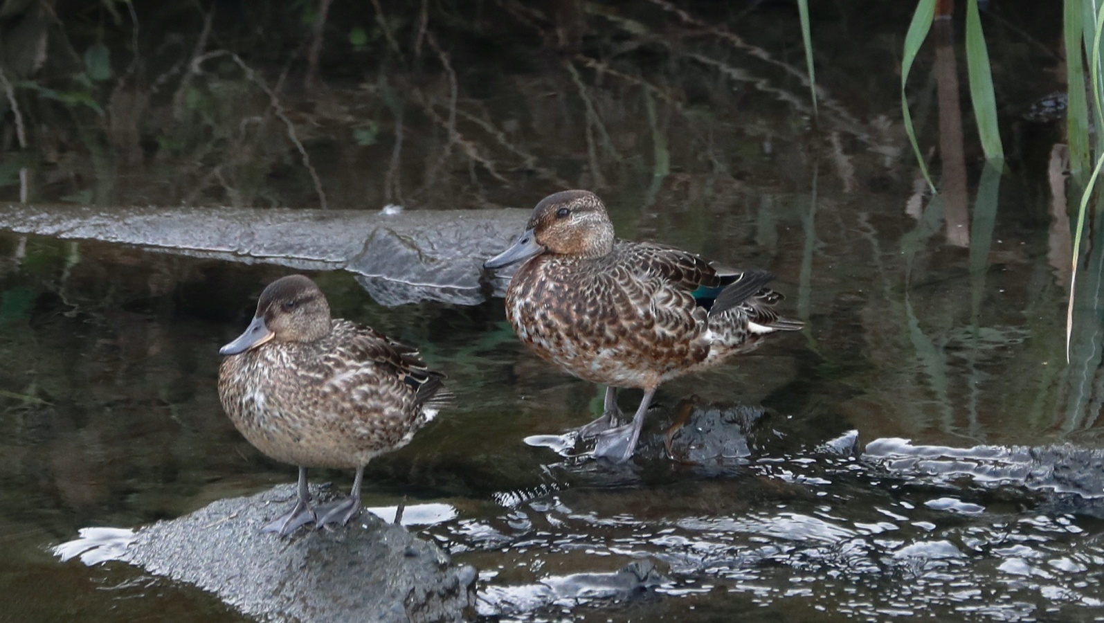 2週間位前に来ていた1羽のコガモの先導だったのか?親水公園の川にやっとやってきた、まだ♂♀の区別が付かないコガモ達です。
