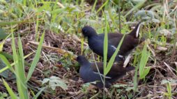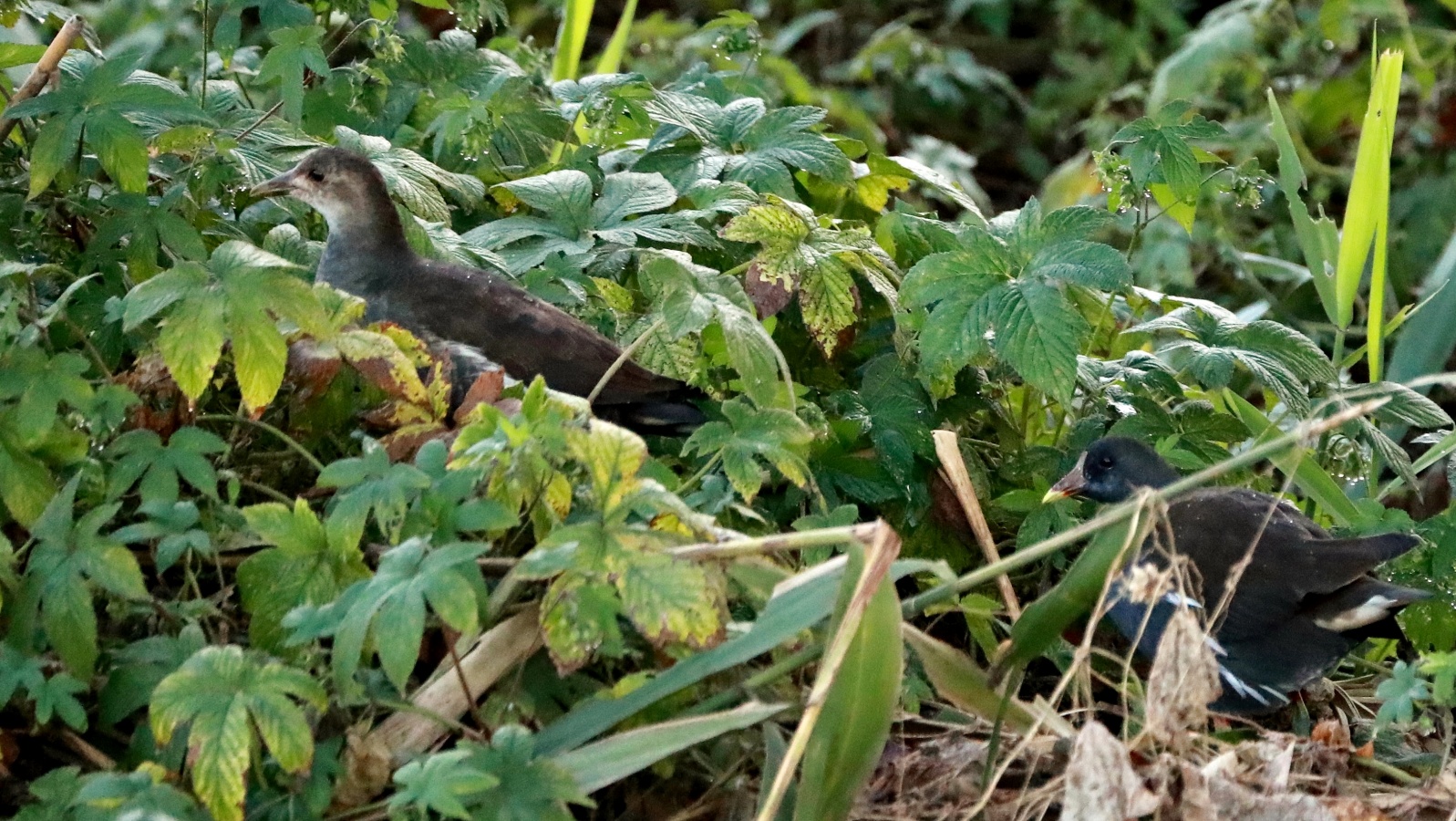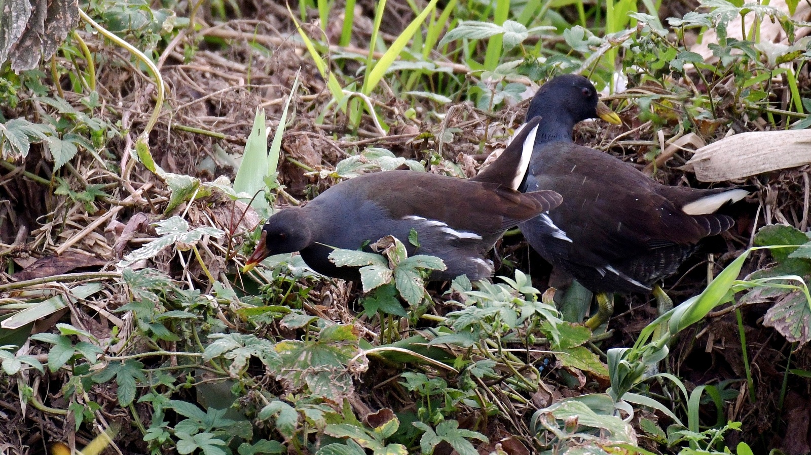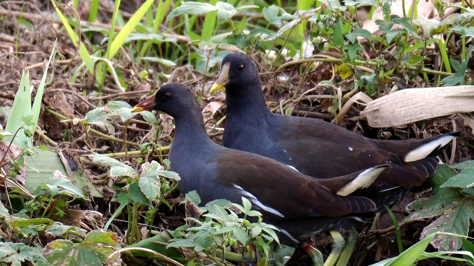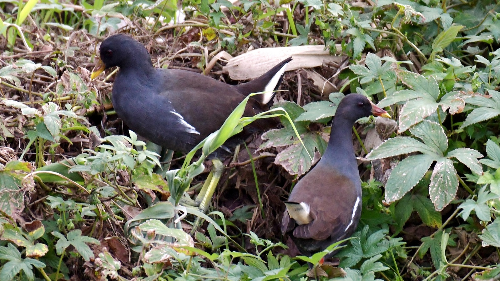。 先日、公園の川の淵で撮ったバンの親子様子を…幼鳥は判るけど嘴が赤くなくて少し多きいのが♂?なのかなぁ~~