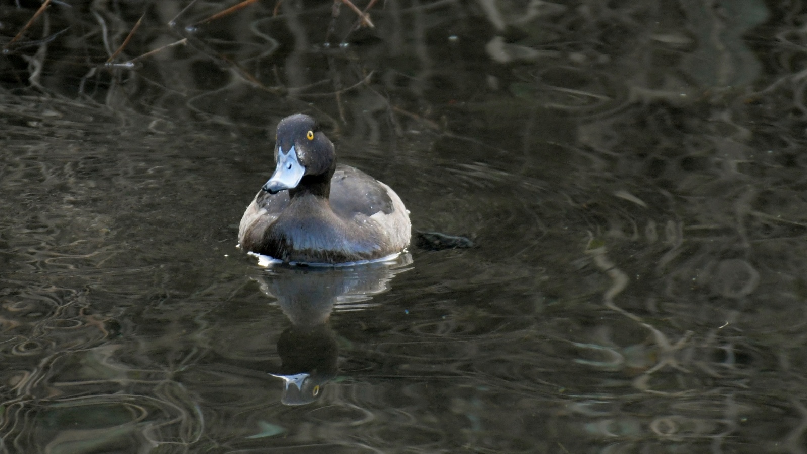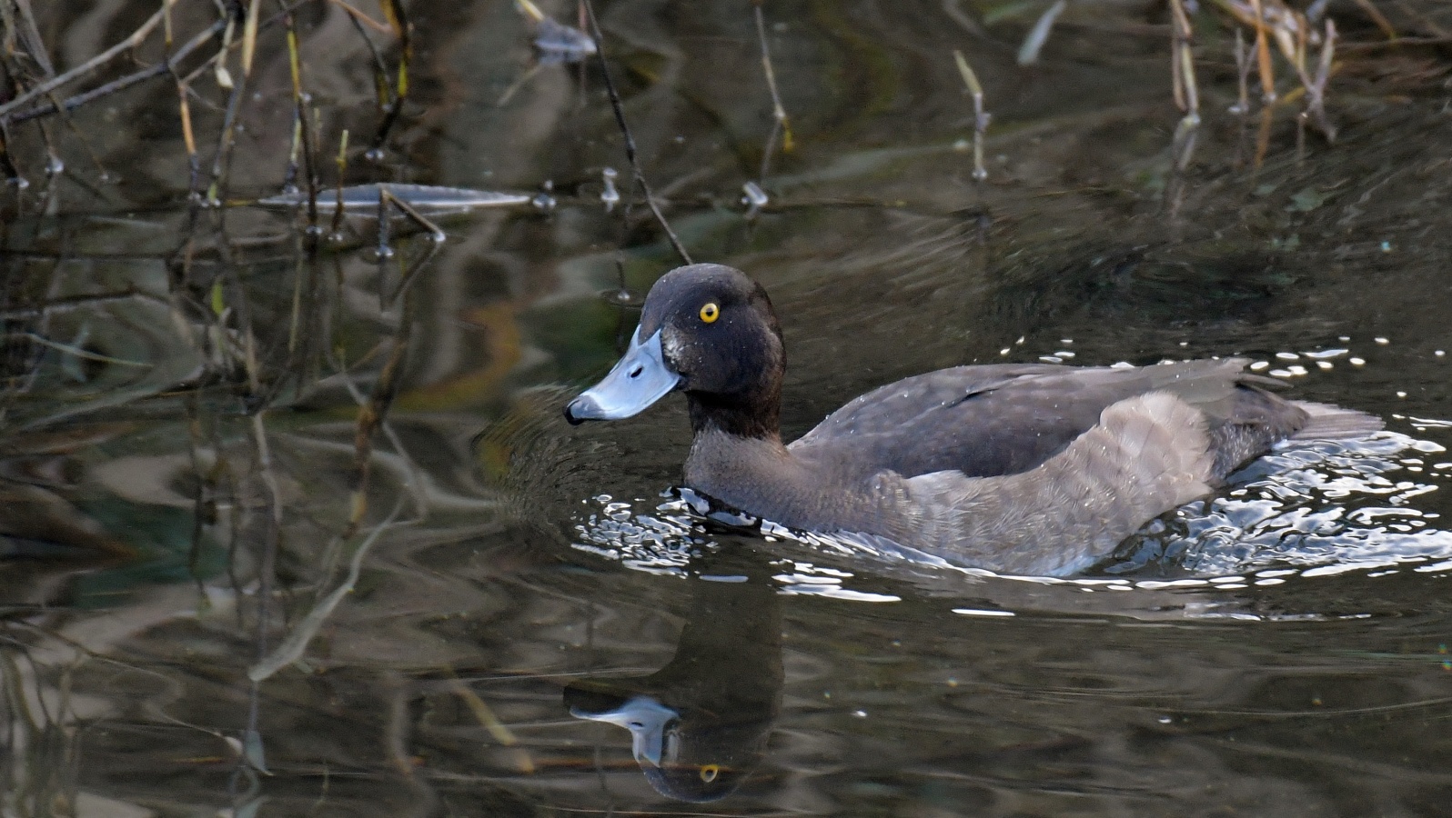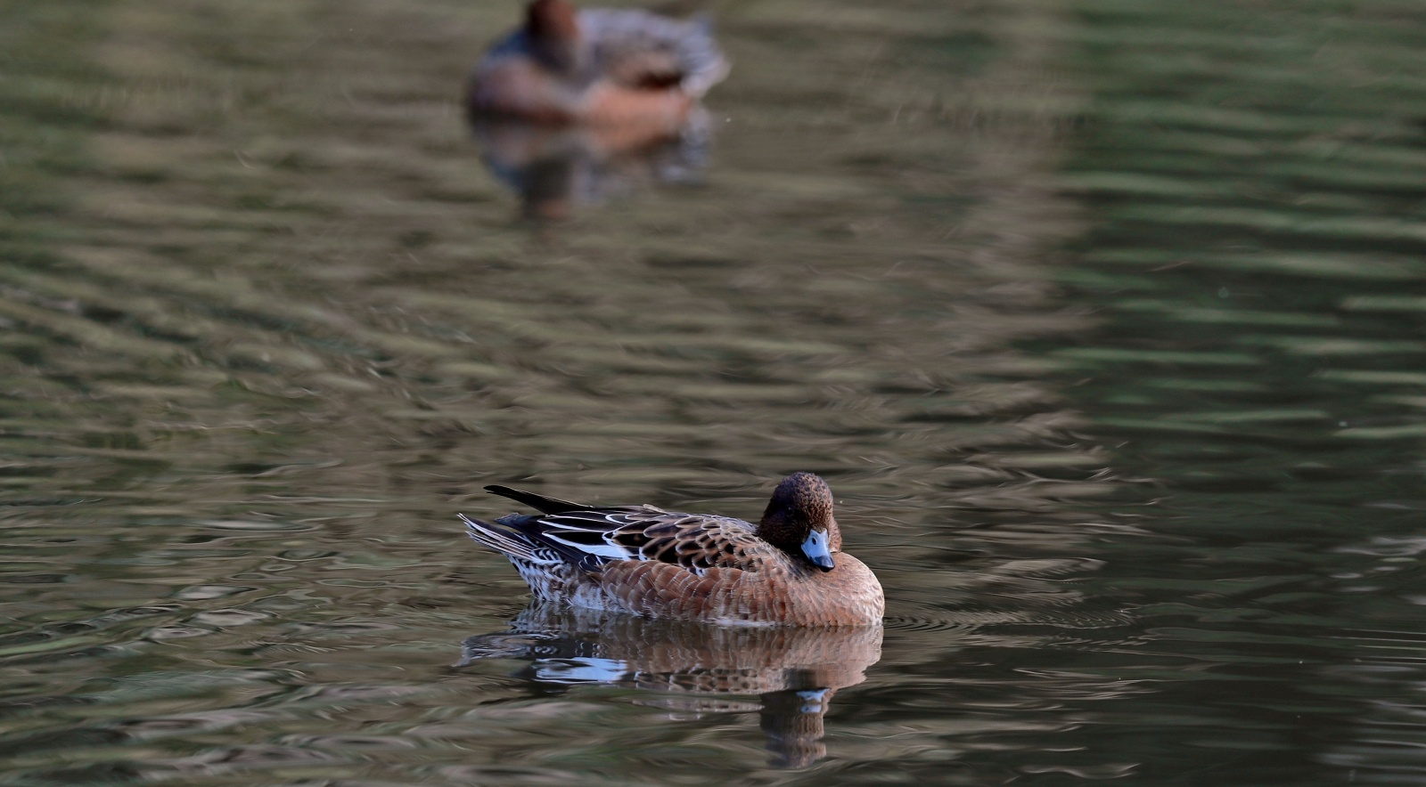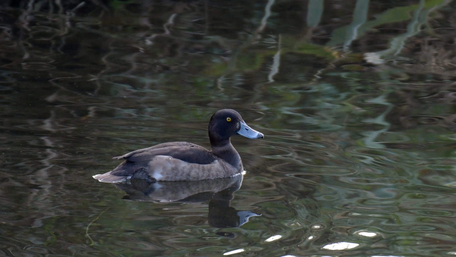 ◎先日の早朝にこの引地川では始めてみたキンクロハジロ♀…… と某公園のヒドリガモ~鴨類は水面との雰囲気が綺麗です~♪