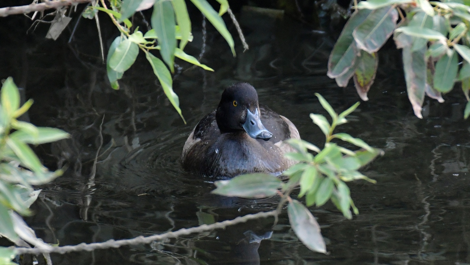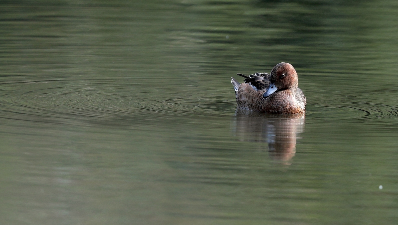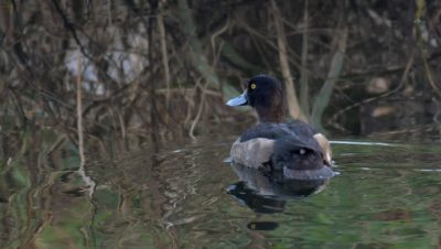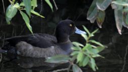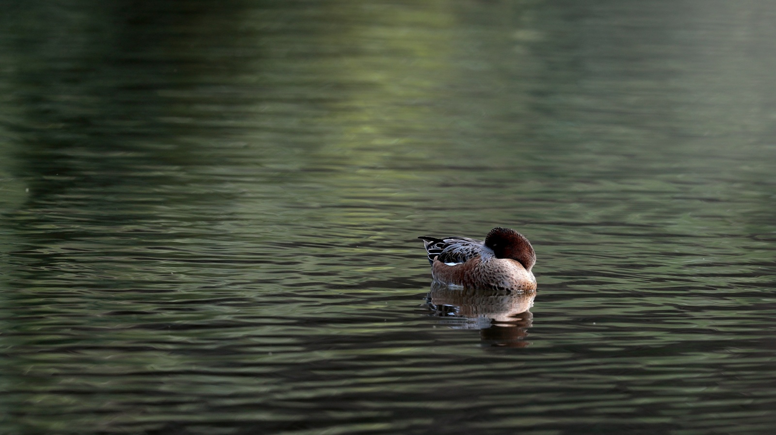 ◎先日の早朝にこの引地川では始めてみたキンクロハジロ♀…… と某公園のヒドリガモ~鴨類は水面との雰囲気が綺麗です~♪