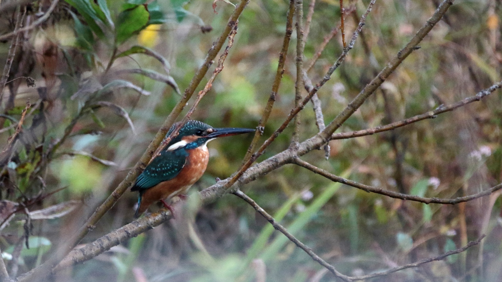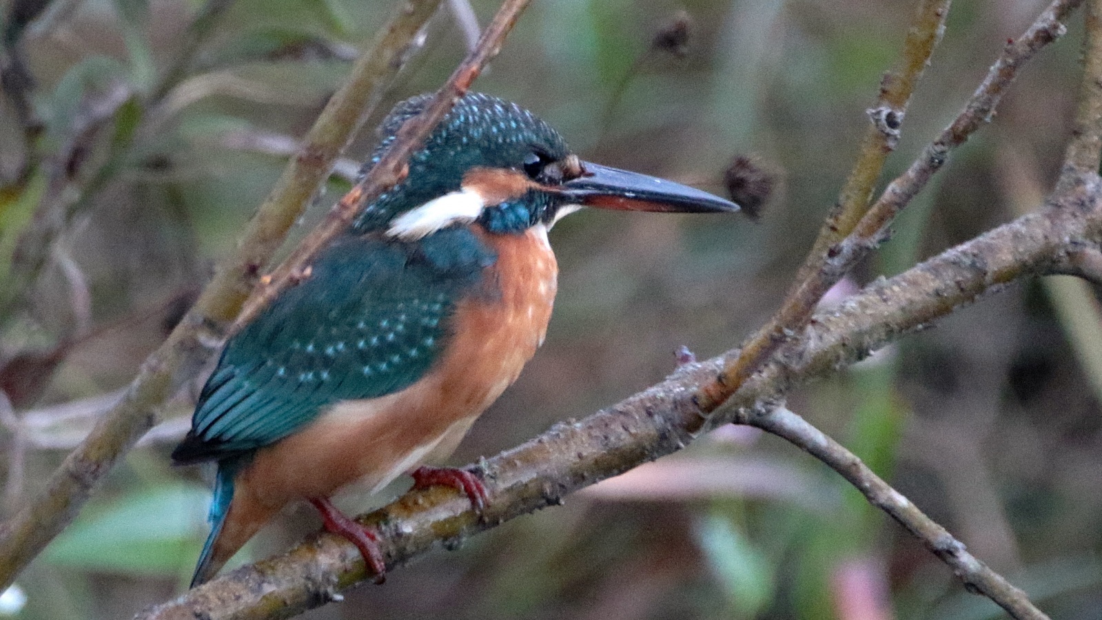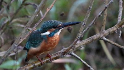 今朝は又一段と冷え込んで・・・・。 夢眠の散歩後の早朝鳥撮りでは珍しく公園の池に臆病ではない翡翠♀が来ていました~♪
