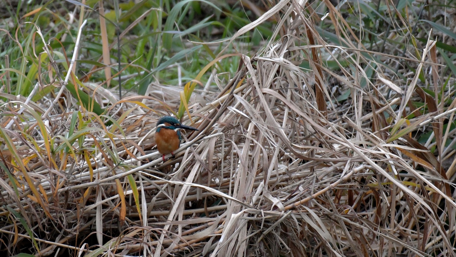 北風が強めで結構”寒かったし、鳥の声も出だしはほとんど聞こえずモズやヒヨドリの声さえ聞こえません。 ……が飼いならした様に(笑)翡翠の声を鳴らすと~最近縄張り争いで鳴き声に敏感になっているのだろう翡翠君は、直ぐに現われてくれました。~♪