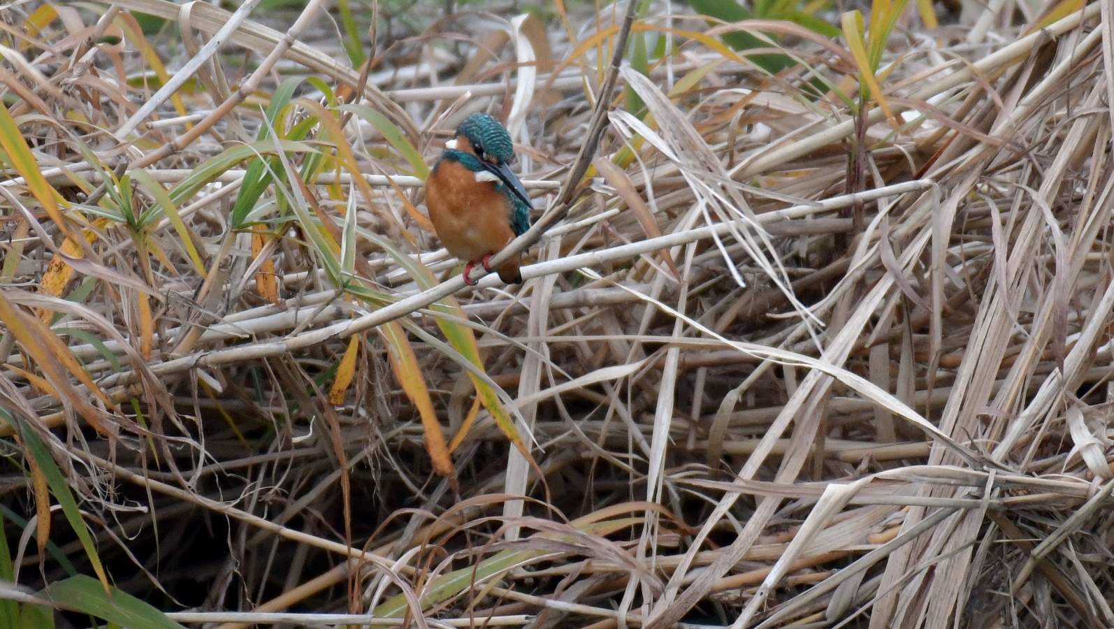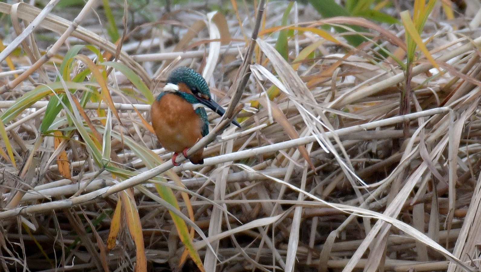 暗~~い!朝です、日の出の時間を過ぎてもブ厚い雲に覆われた空はどんよりして、こんなに暗くっちゃあ~撮れないかも?と思いつつも日課の早朝鳥撮りはやりましたよ!~(笑) 北風が強めで結構”寒かったし、鳥の声も出だしはほとんど聞こえずモズやヒヨドリの声さえ聞こえません。 ……が飼いならした様に(笑)翡翠の声を鳴らすと~最近縄張り争いで鳴き声に敏感になっているのだろう翡翠君は、直ぐに現われてくれました。~♪ でも暗くて三脚にガッチリ固定させたカメラのシャッタースピードは1/40!(汗)……留まり物しか撮れませんが。
