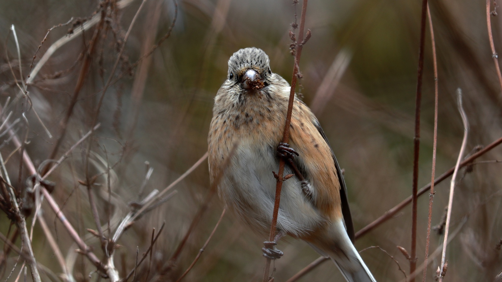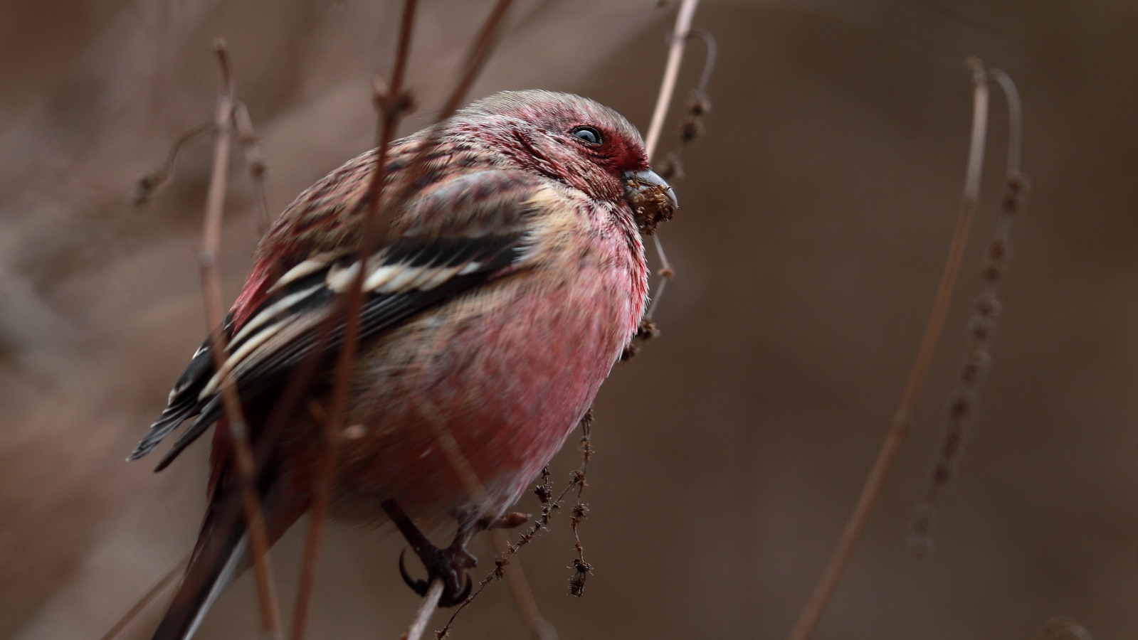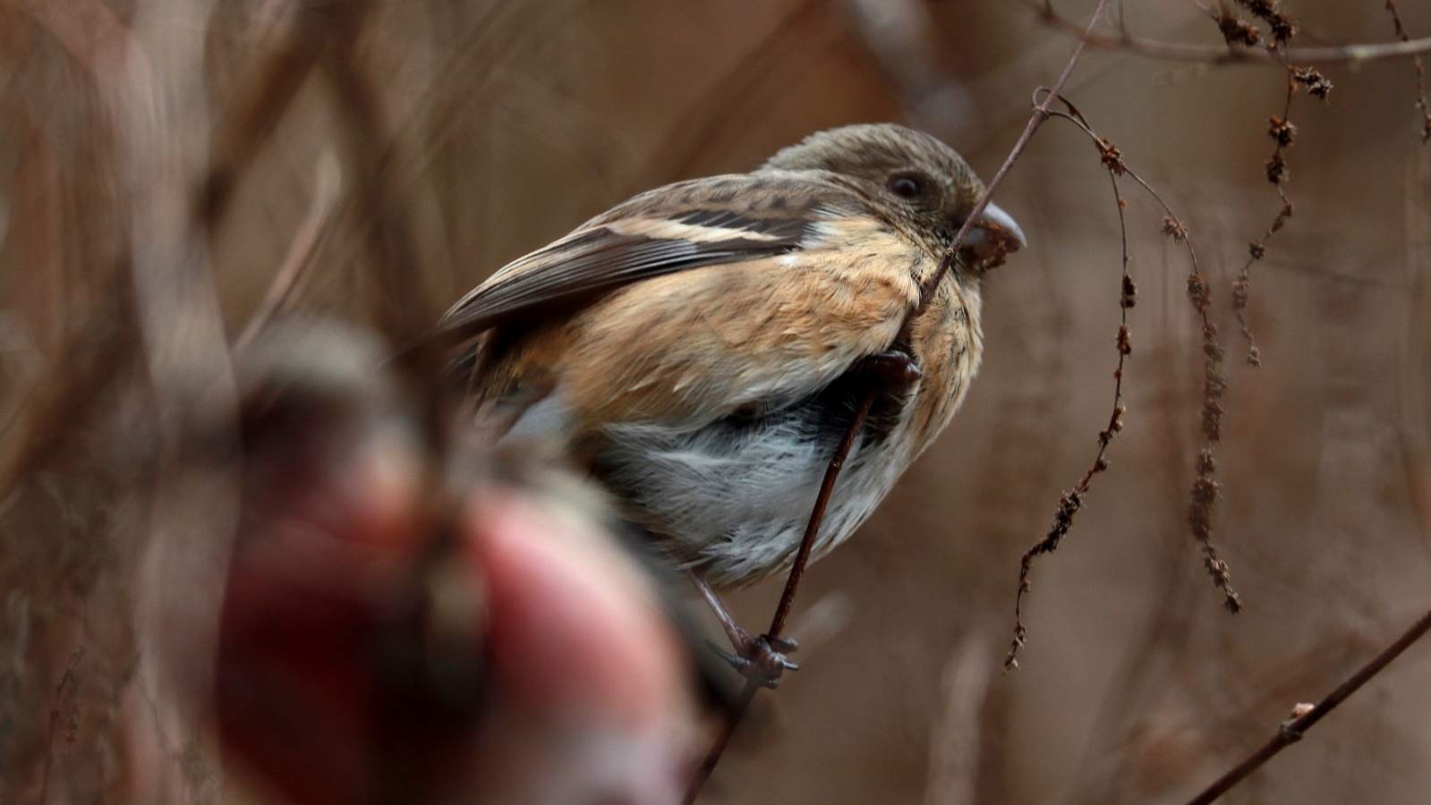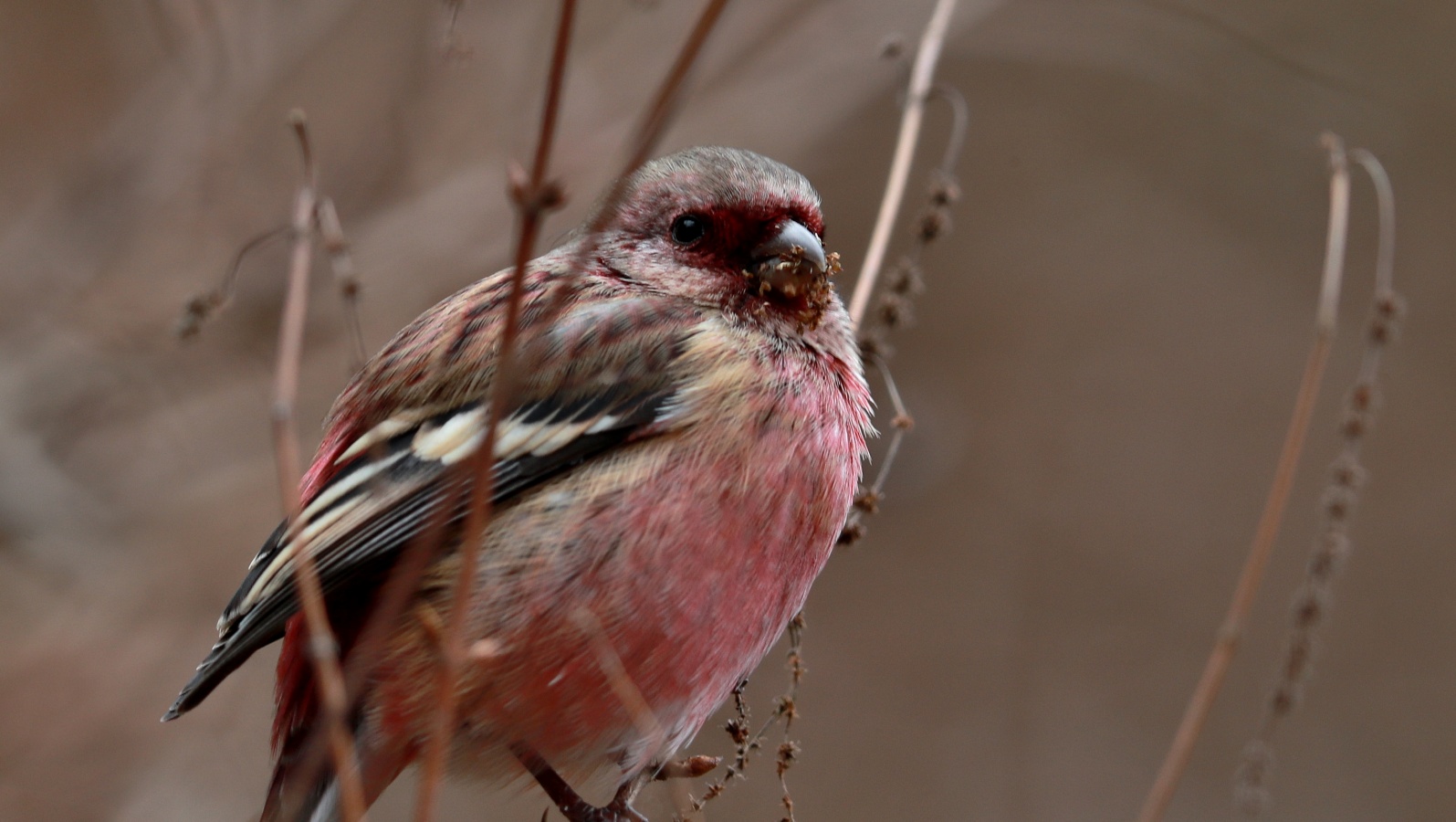 しかし何時見てもベニマシコって食事が下手なのか、どの仔も口の周りに一杯”種をつけた様は呆れかえってしまいます!~(笑)
