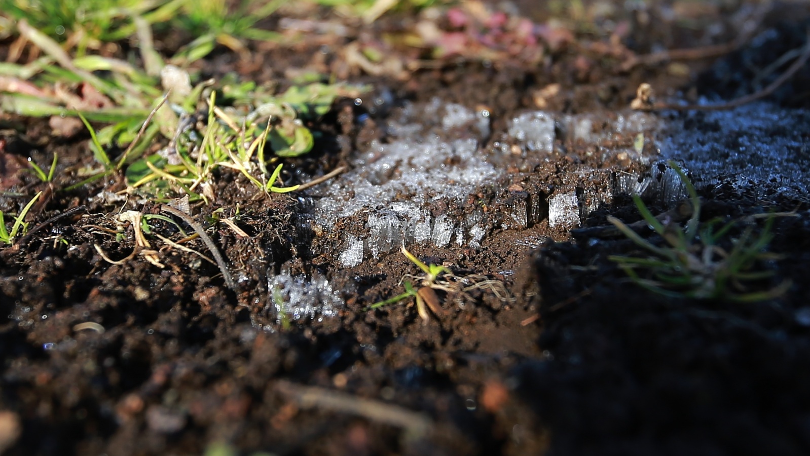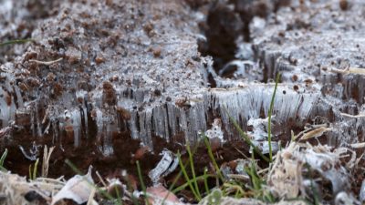 公園に行ったら木道は勿論”凍っているし、今シーズンは3~4回しか出来なかった霜柱もしっかりと立っていました!