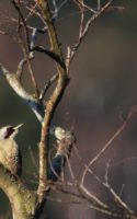 今日もガングロ君が撮れるかな?なんて思いながら下流に歩きましたが、今朝は声すら聞こえずに替わりに久しぶりにアオゲラ君が出てくれました。 去年は今頃2羽でよく出てくれたアオゲラでは無い様な…?まだ若そうで嘴も少し短めな個体です。  川では翡翠がピーピー鳴きながら2羽で仲良く近くで留まって居た様ですが…… なんとかアオゲラの飛び出しや飛び物を撮ろうと~後ろで聞こえる翡翠の声を聞きながらじっと我慢して(200枚近くシャッター押しちゃったし~笑”)カメラをずっとアオゲラに向けていたので翡翠は撮れないどころかアオゲラも全然動かず~(汗)……結局”時間切れで撤退するはめになりました。~(悔)