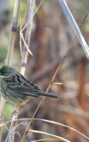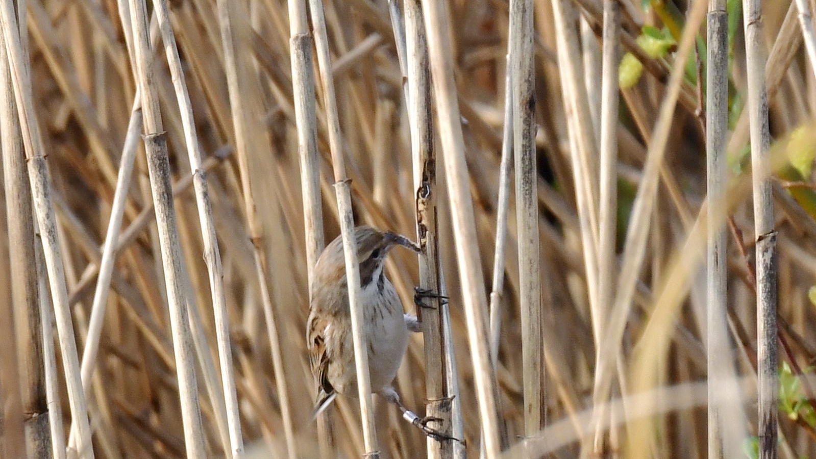 今朝は鳥の声も沢山聞こえましたが、先日”ススキの枯れ枝絡みばかりでよく撮れなった~オオジュリン狙いで、今朝は距離は遠くてもなんとか証拠写真程度に撮れたオオジュリン!……