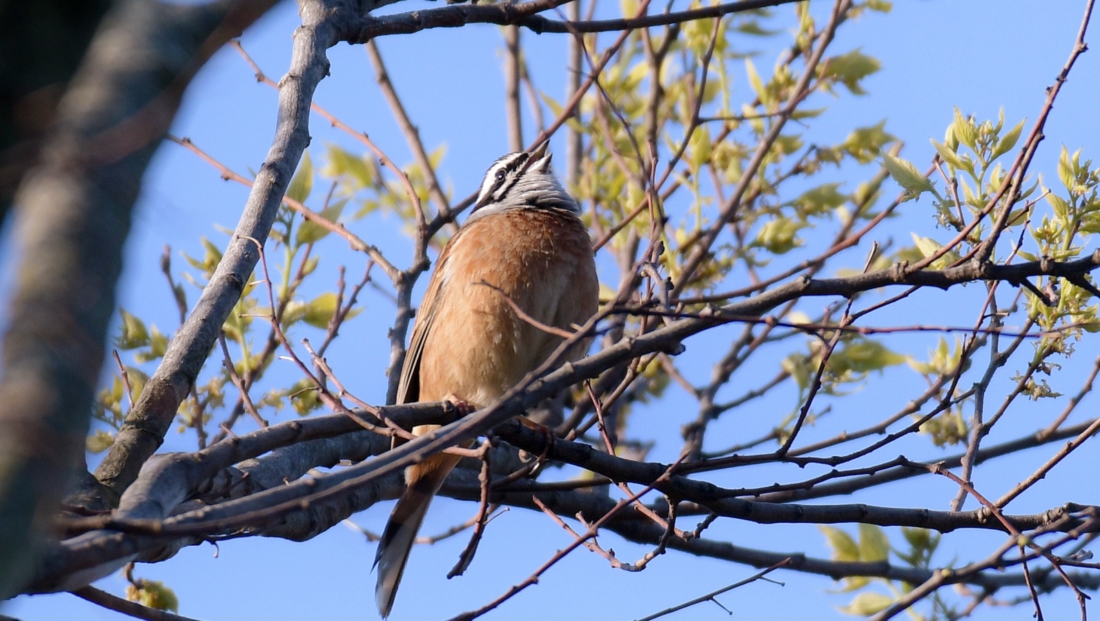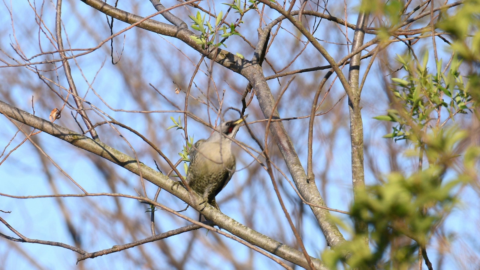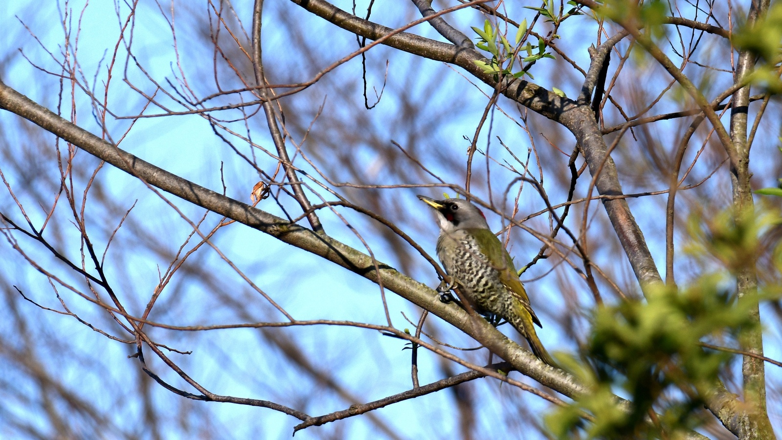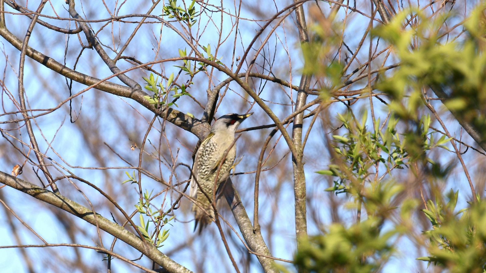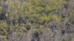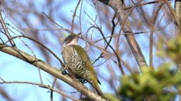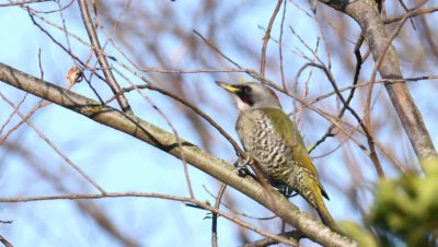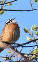 今朝の鳥撮りでは遠すぎて証拠写真にもならない様な(笑)……でもなんとか判る感じの、今シーズン初”のコムクドリです。~2羽居ましたが、直ぐに飛びさってしました。これからジャンジャン来るのかなぁ~? もろ枝被りのアオゲラもちょこっと!……去年も2羽が今頃の時期には良く現われてくれましたが今年も2羽で飛び回って居ます~♪ さて今朝は撤退間際の帰り道でなんだか判別のつかない鳥さんがいました……? 逆光で上手く撮れませんでしたが(ヘタクソ!)、ノビタキにも見えるし《時期が変!~笑”》、尾羽根は上がっていませんでしたがオジロビタキにも似ていたし、結局”パソコンに落としてよく見てもなんという鳥なのか判りませんでした……。