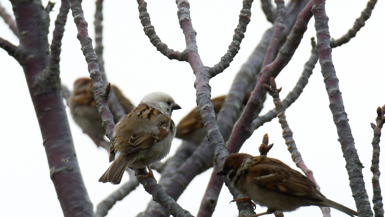 ◎そうそう…この日は珍しくあのかなり人気者だった白い頭の雀~すずちゃんが仲間達と公園に戻って来ていたのも撮れました~♪