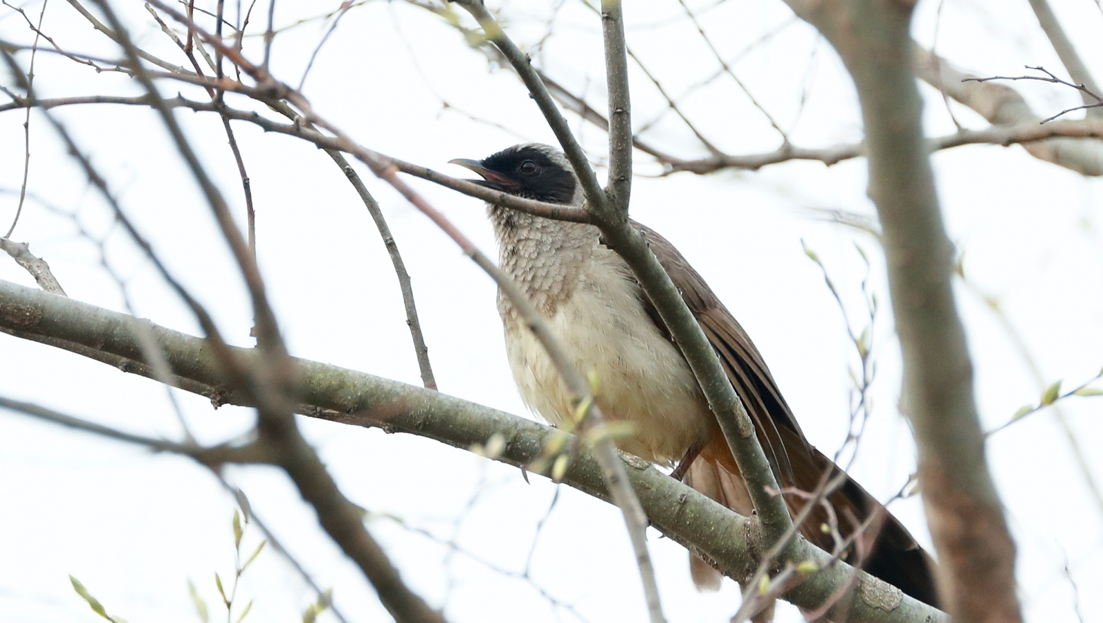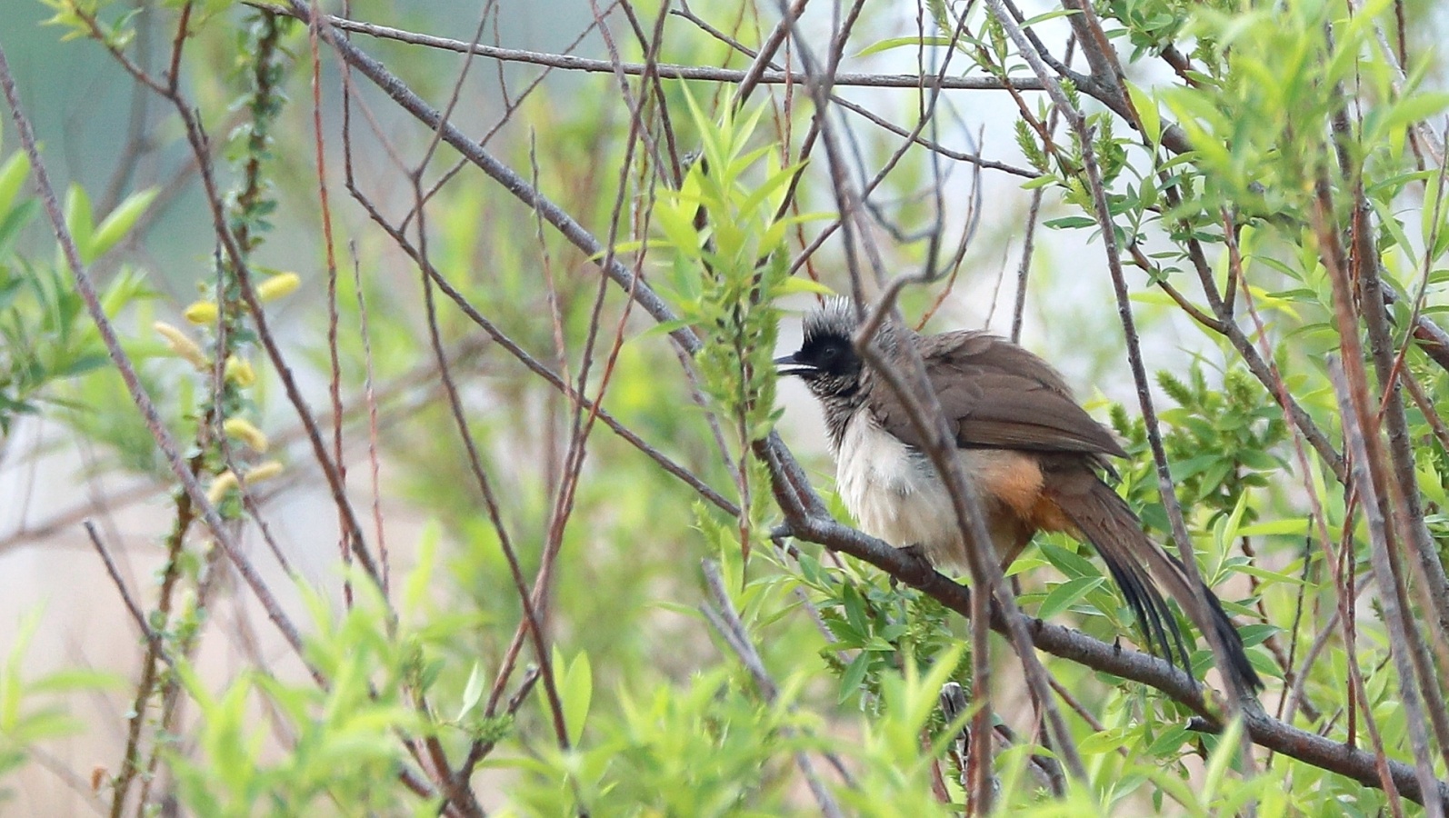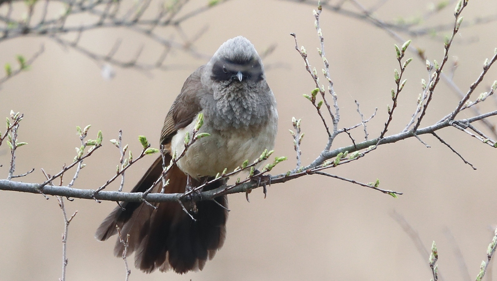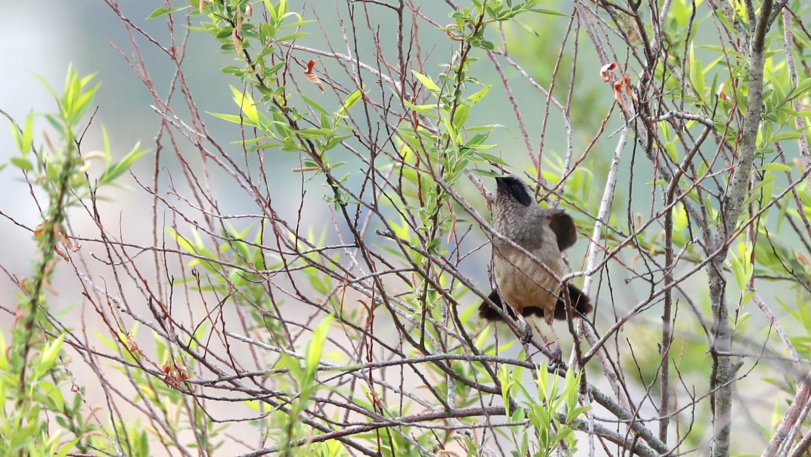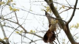 さかりがついたのか?~(笑)叫ぶような大きな声でさえずり続け、一緒に行動をしているガビチョウの中の1羽を