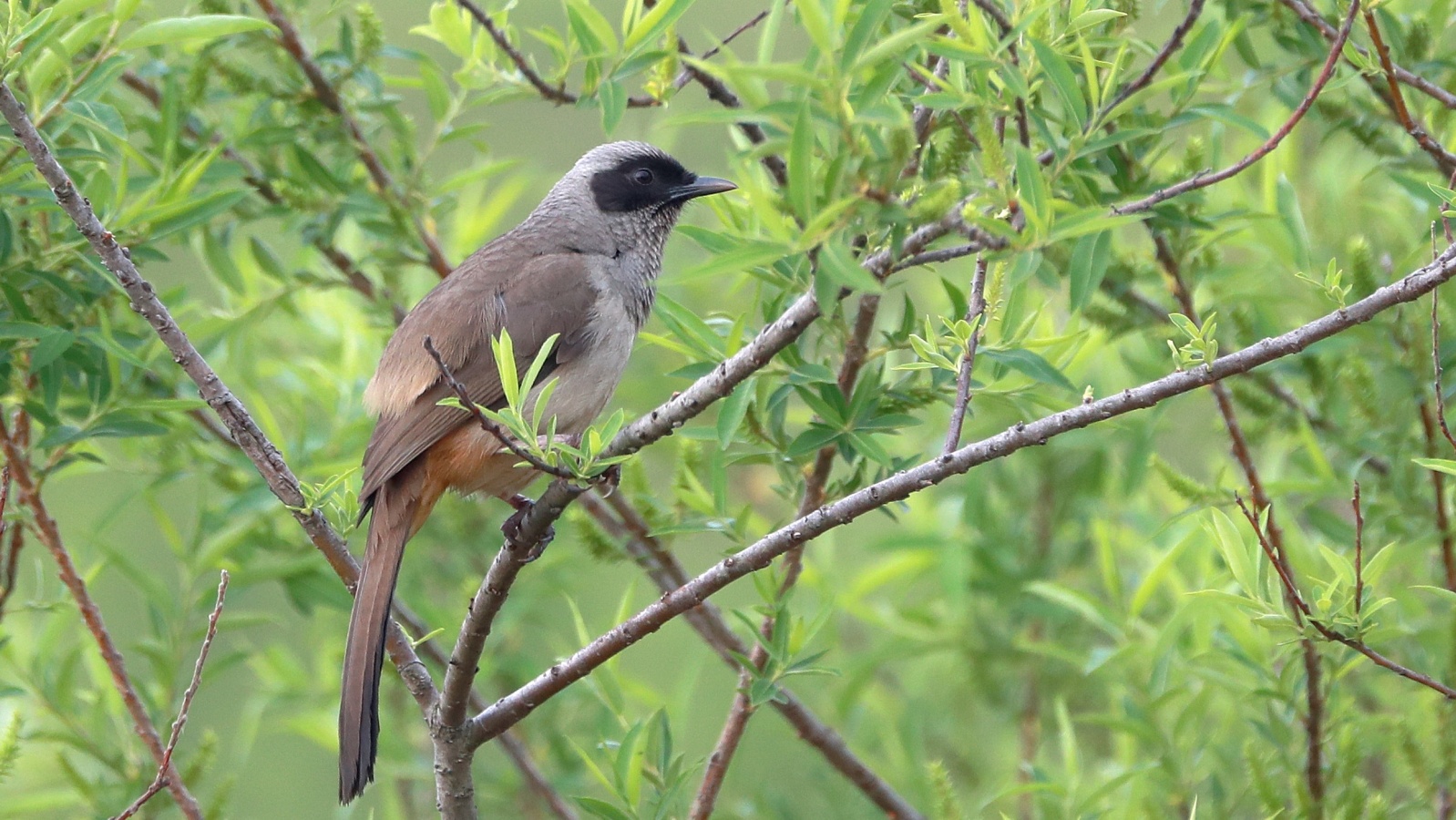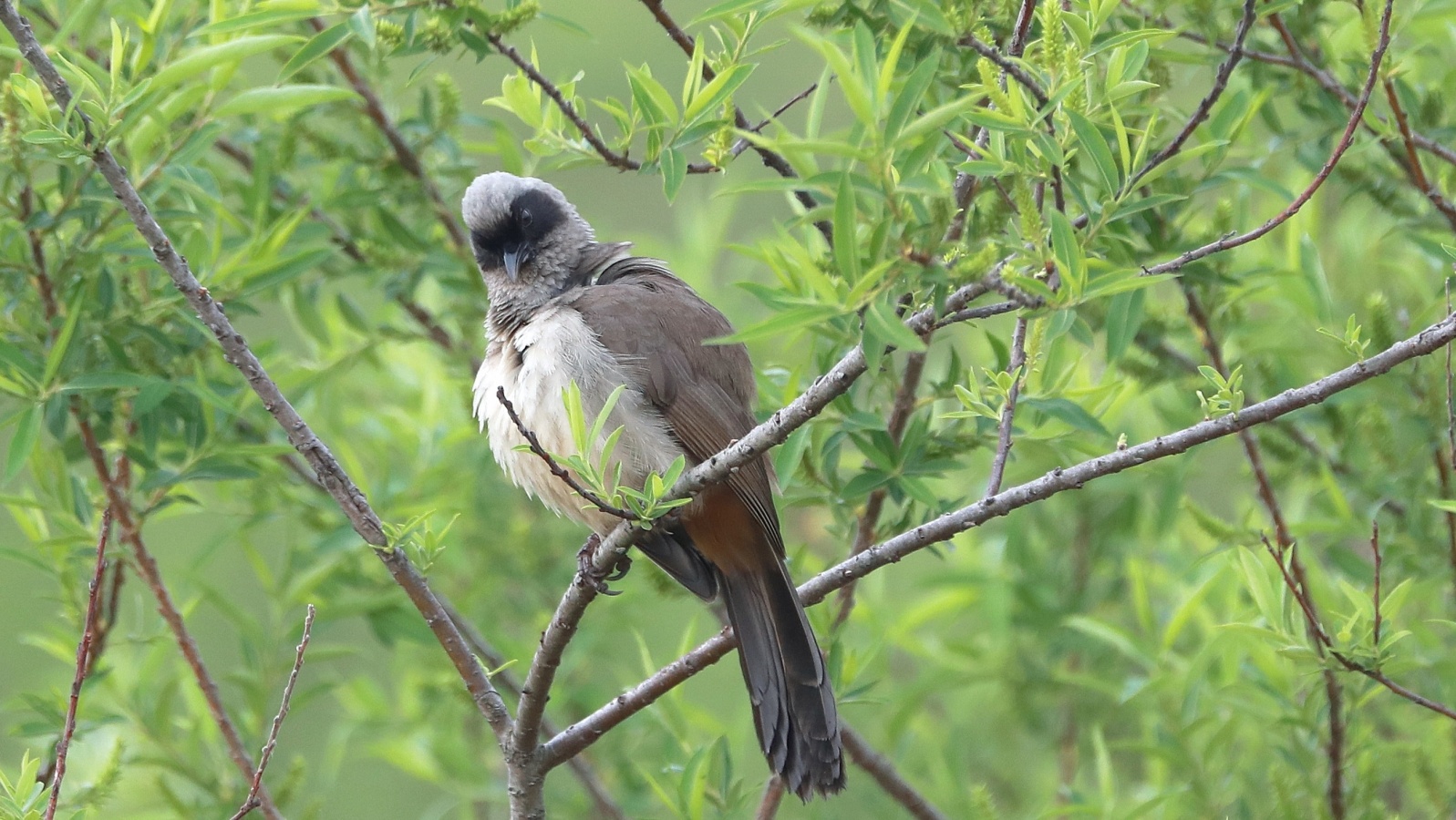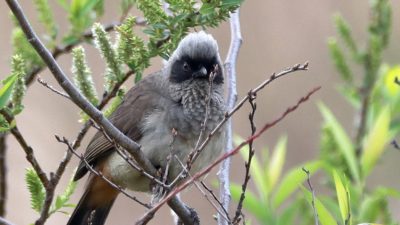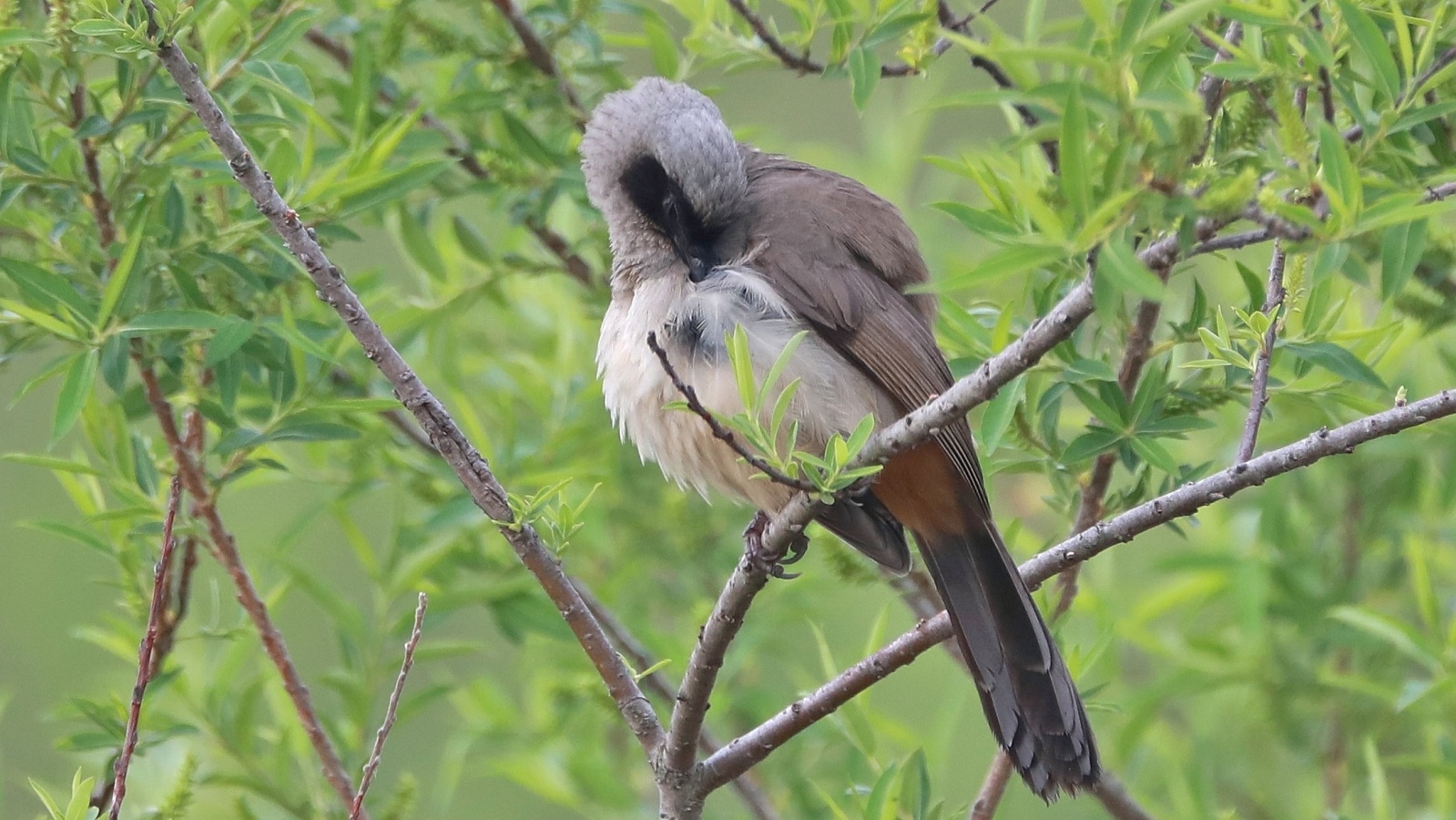 さかりがついたのか?~(笑)叫ぶような大きな声でさえずり続け、一緒に行動をしているガビチョウの中の1羽を