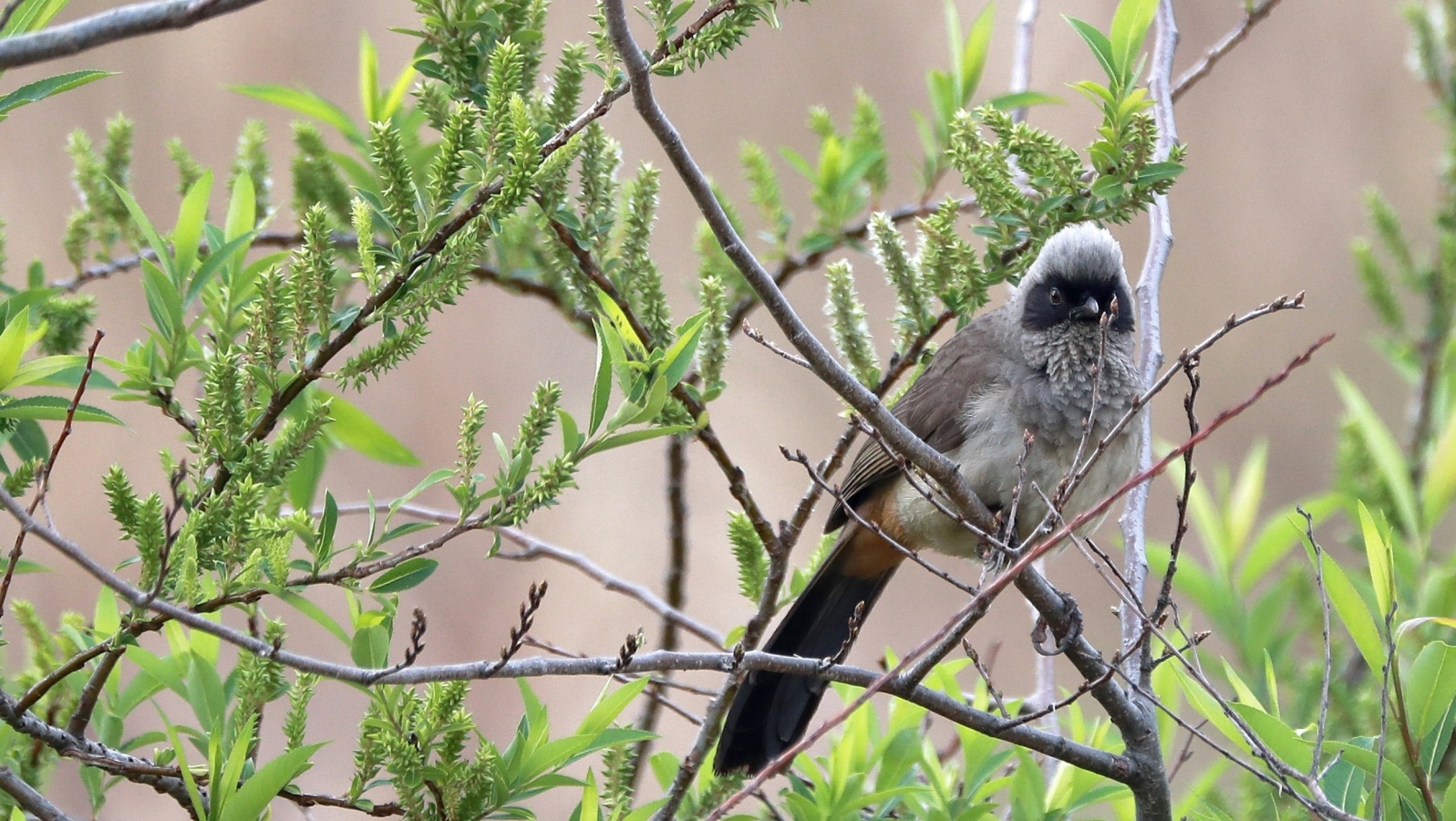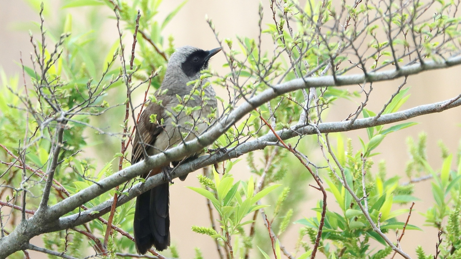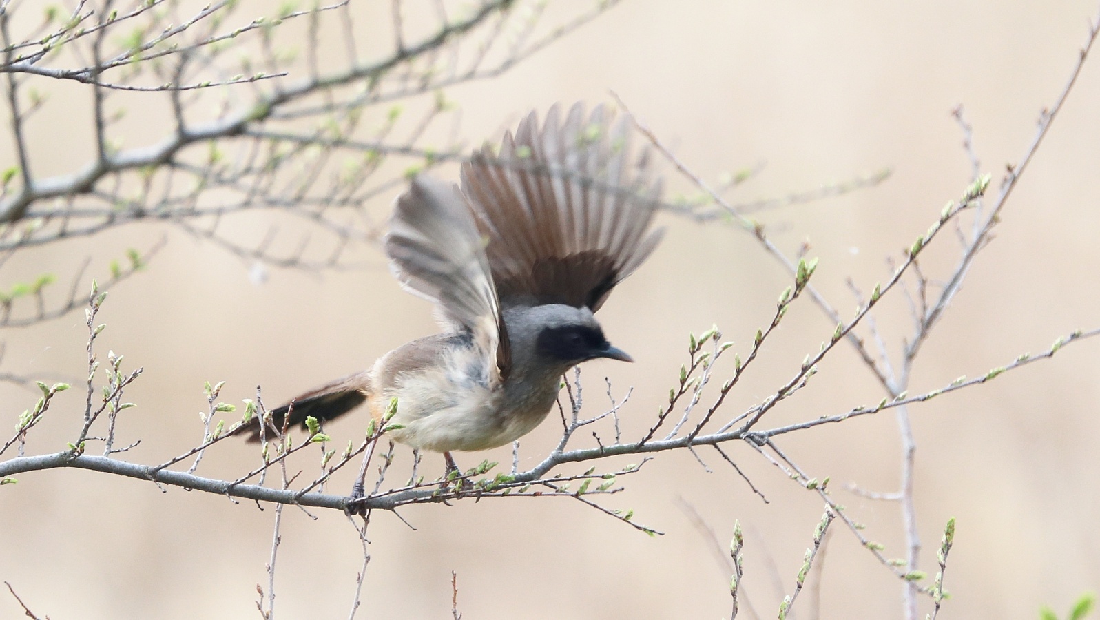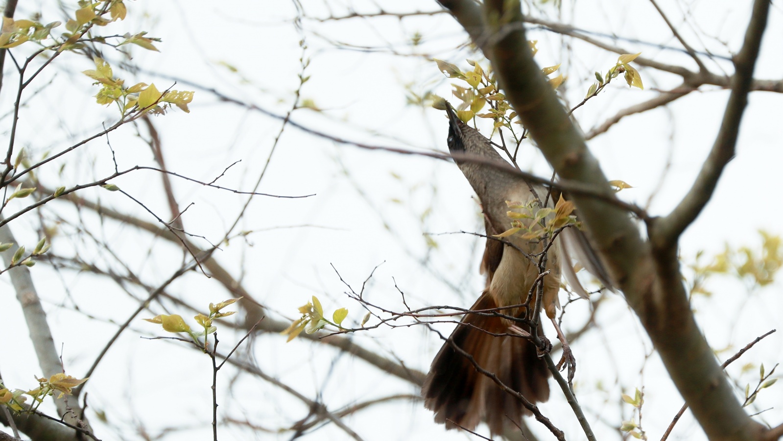 今朝は…声こそ聞こえるものの、なかなか見える所に出て来てくれなかったガングロ君(10日ぶりかな?)が春を感じて