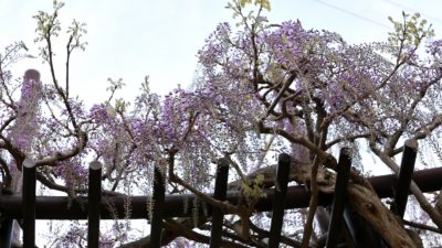公園では桜もだいぶ散って藤棚の藤の花も徐々に咲き始めました。