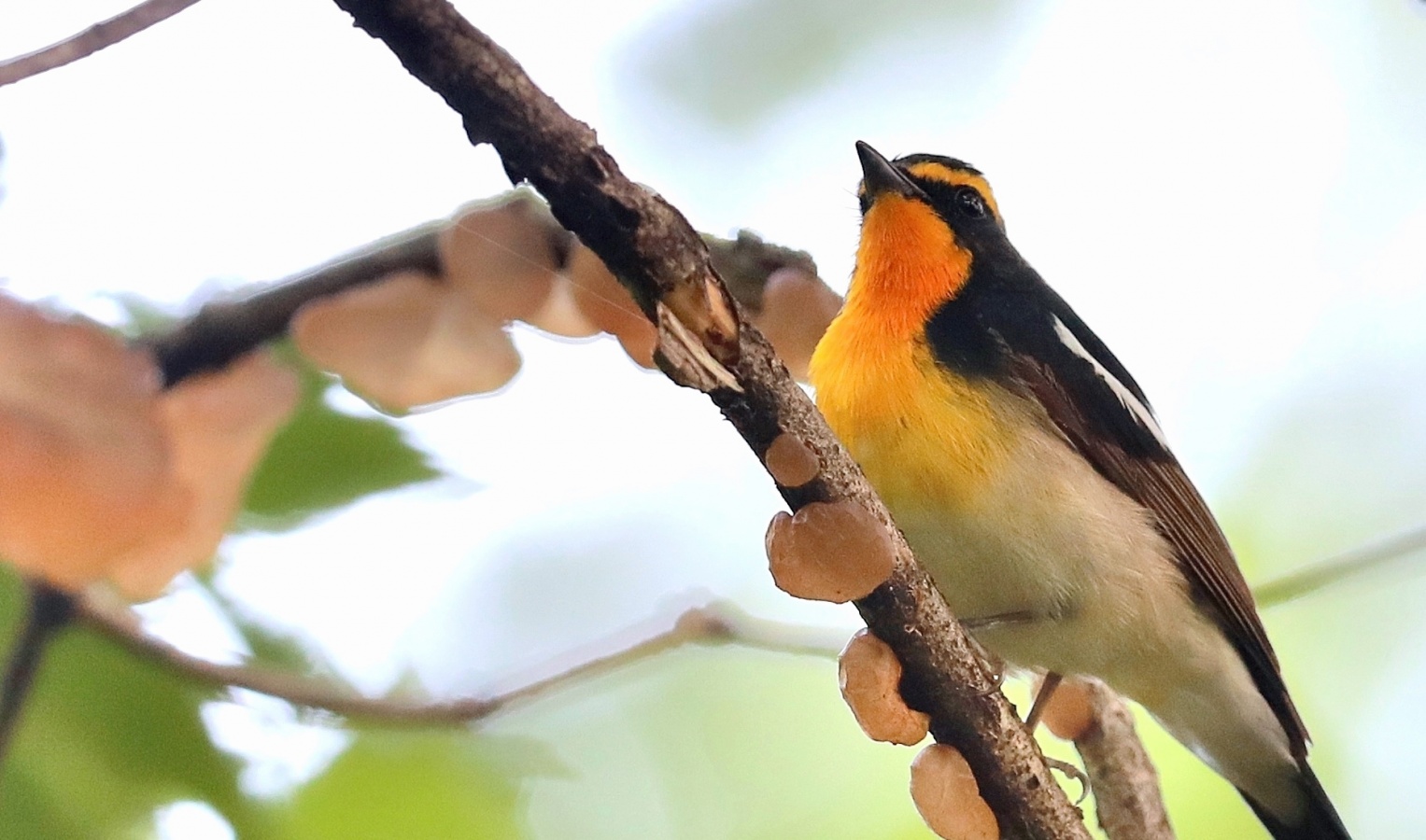 ◎~~おまけ…先日撮ったキビタキ♂の居た森の中で沢山の木々に付いていた薄ピンク色のゼリー状の物体がいったい何か?生物か?なにかの卵か?……と結構”気になってネットで調べてみたら…どうやら『タマキクラゲ』と言う食用に出来るキノコの一種の様です!……絶対に食べたくないキノコでしょう~(笑)