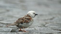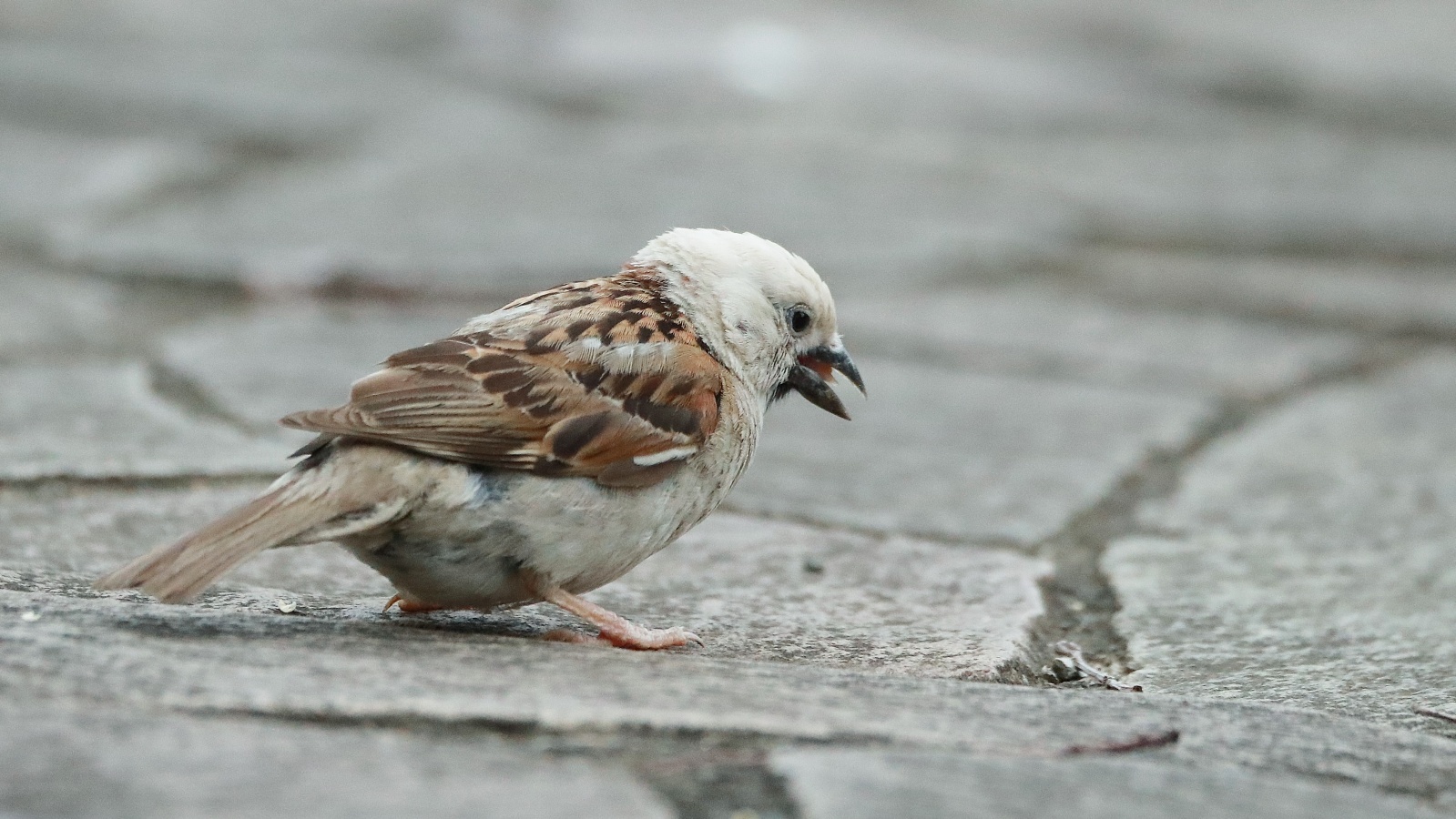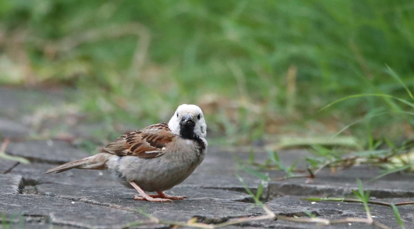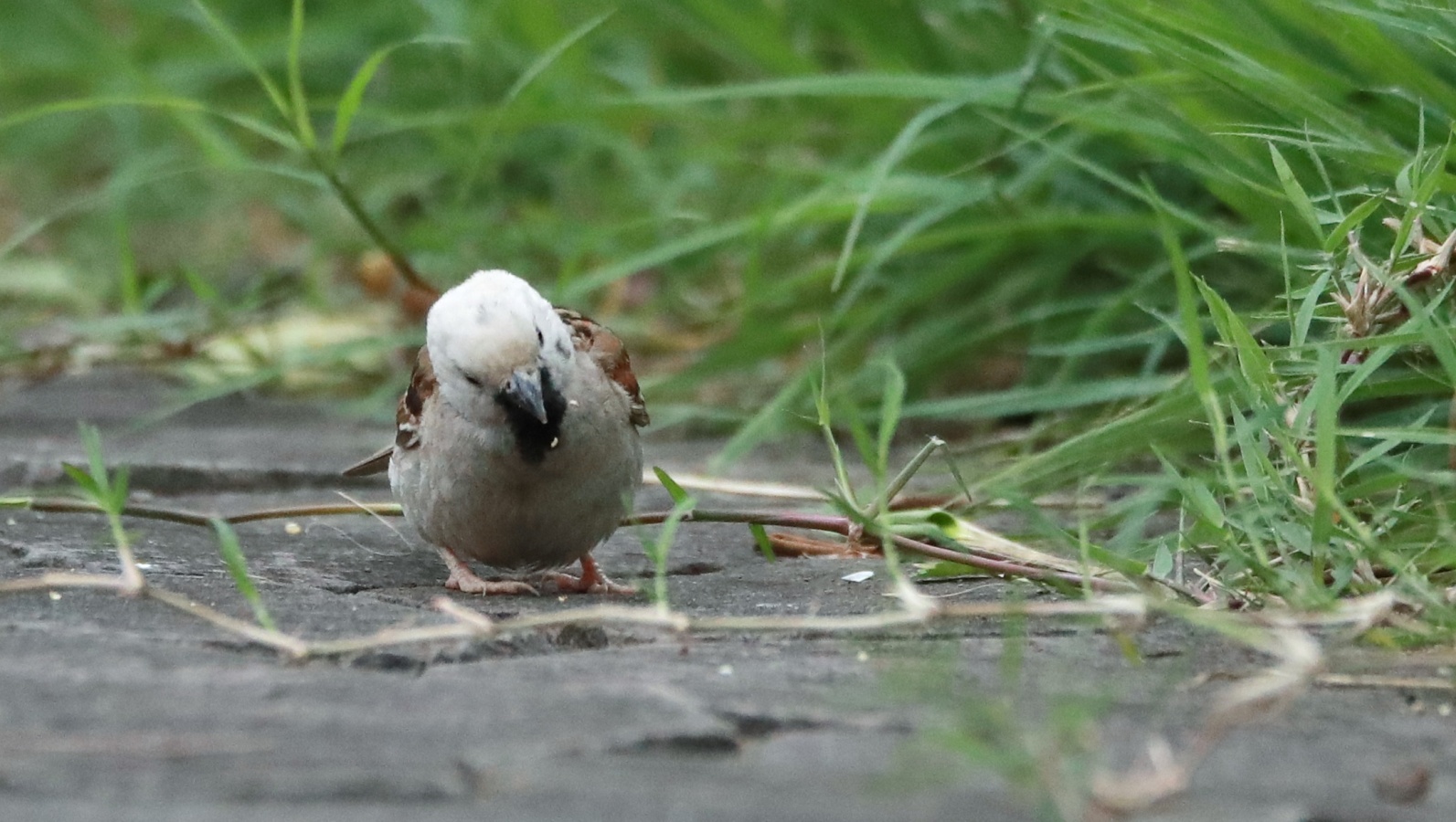 予報では曇りだったのに鳥撮りは無理かな?と思いつつ東屋で様子見をしていたら……直ぐ近くに例の人気者だった白い頭の雀”