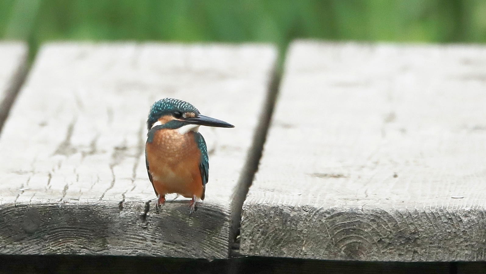 ★お母さん翡翠が追い出しにかかり…川では~もう独り立ちしなさい!って追われているチビ翡翠!……難を逃れ(笑)池の木道に来ましたが、魚は居るのに中々飛び込まず~(忍)……飛び込みを撮ろうと暫らくは待ちましたが一向に動かず~諦めての撤退でした。