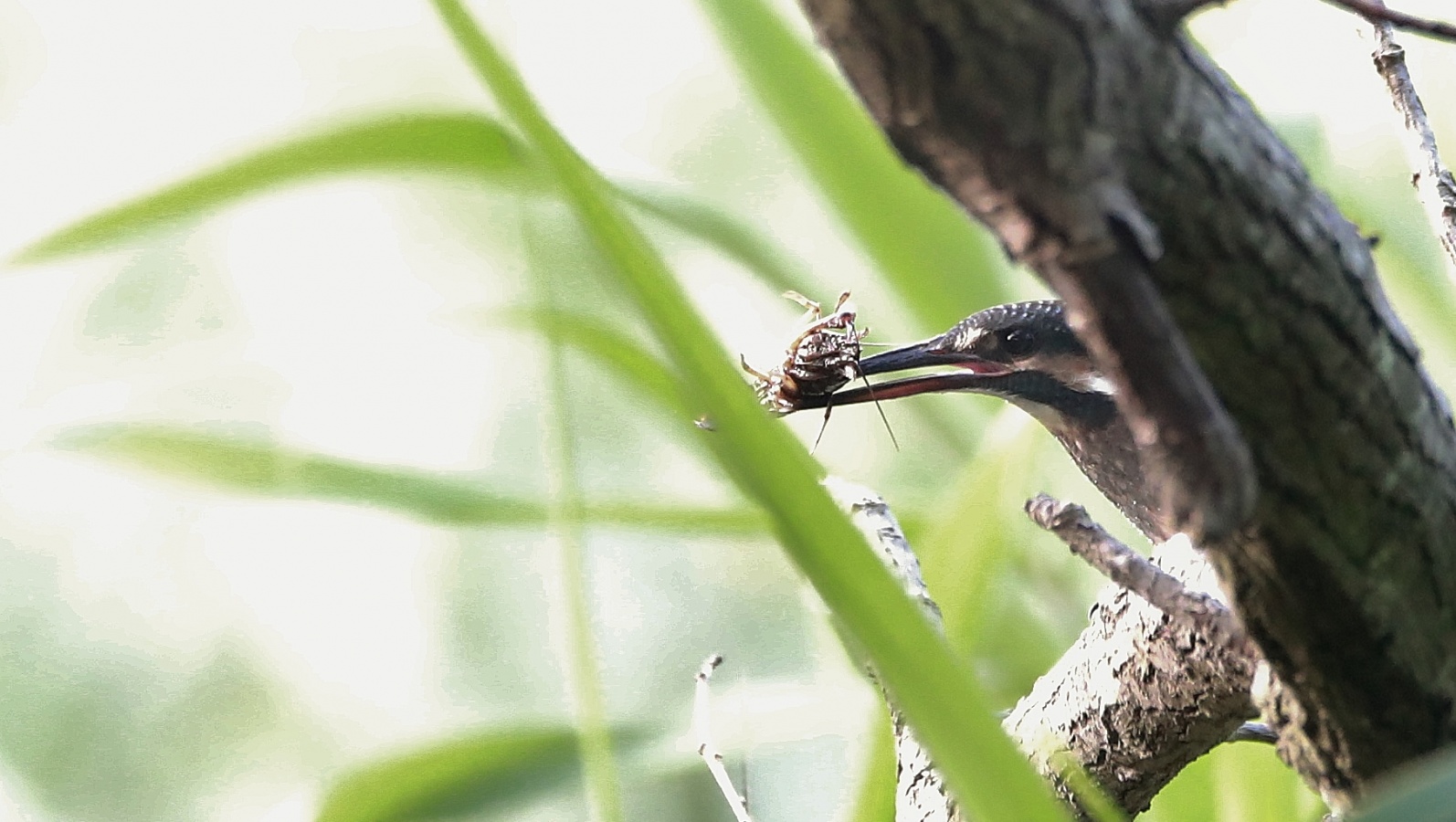 まだかなり黒い雛も公園の湿地帯の木道の横の水溜り(池?)の薄暗い場所のしかも逆光ですがなんとか撮れました。