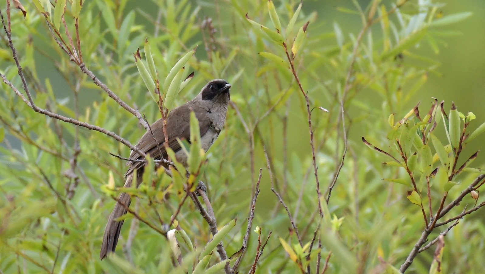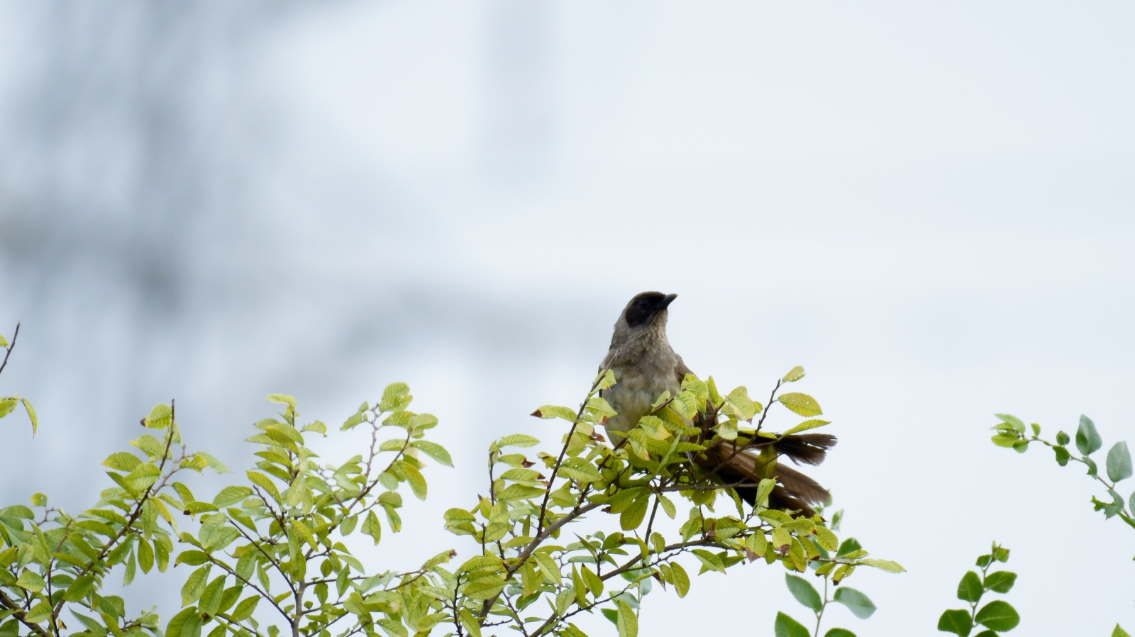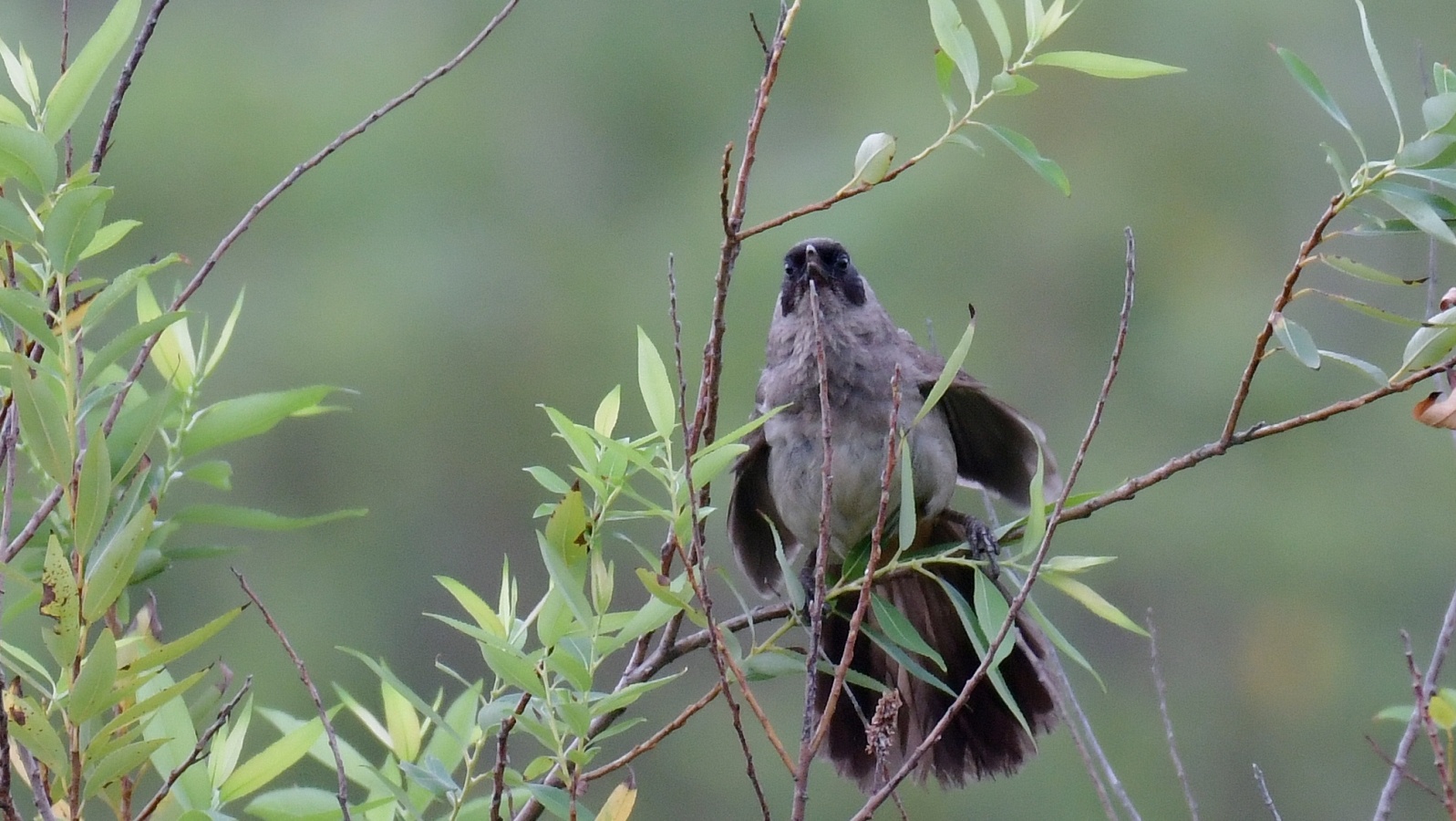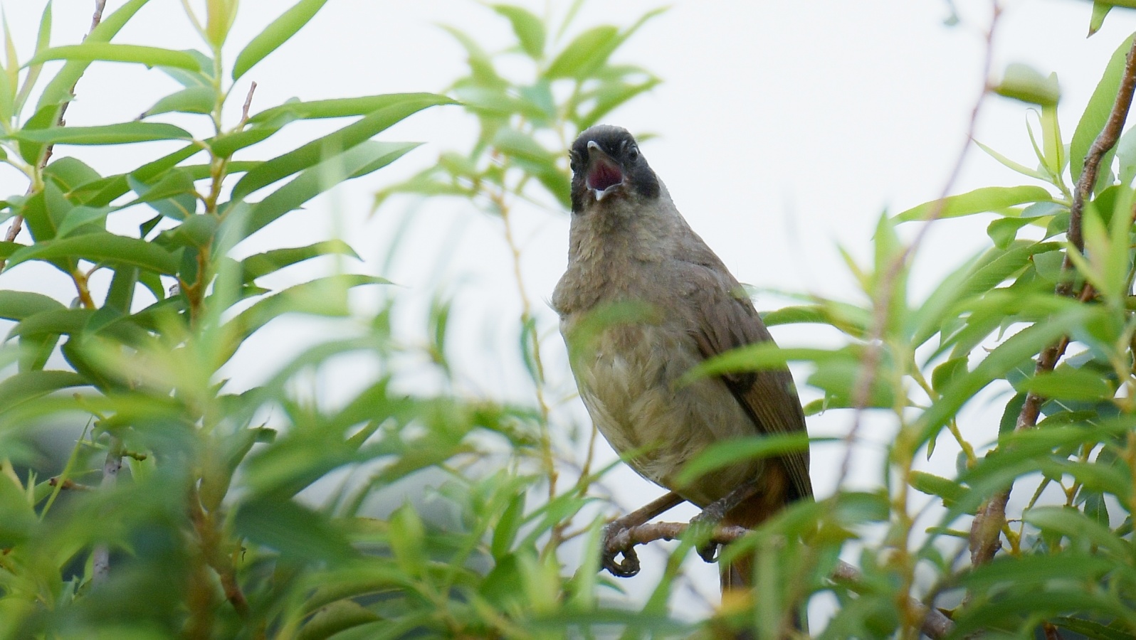 今朝もガングロ君(ガングロガビチョウ)の声が散歩後の休憩しているベンチの少し後ろの方から聞こえ、少し早めに鳥撮りの準備をしました。