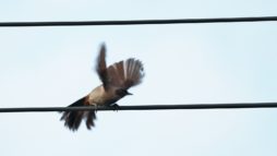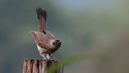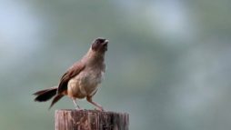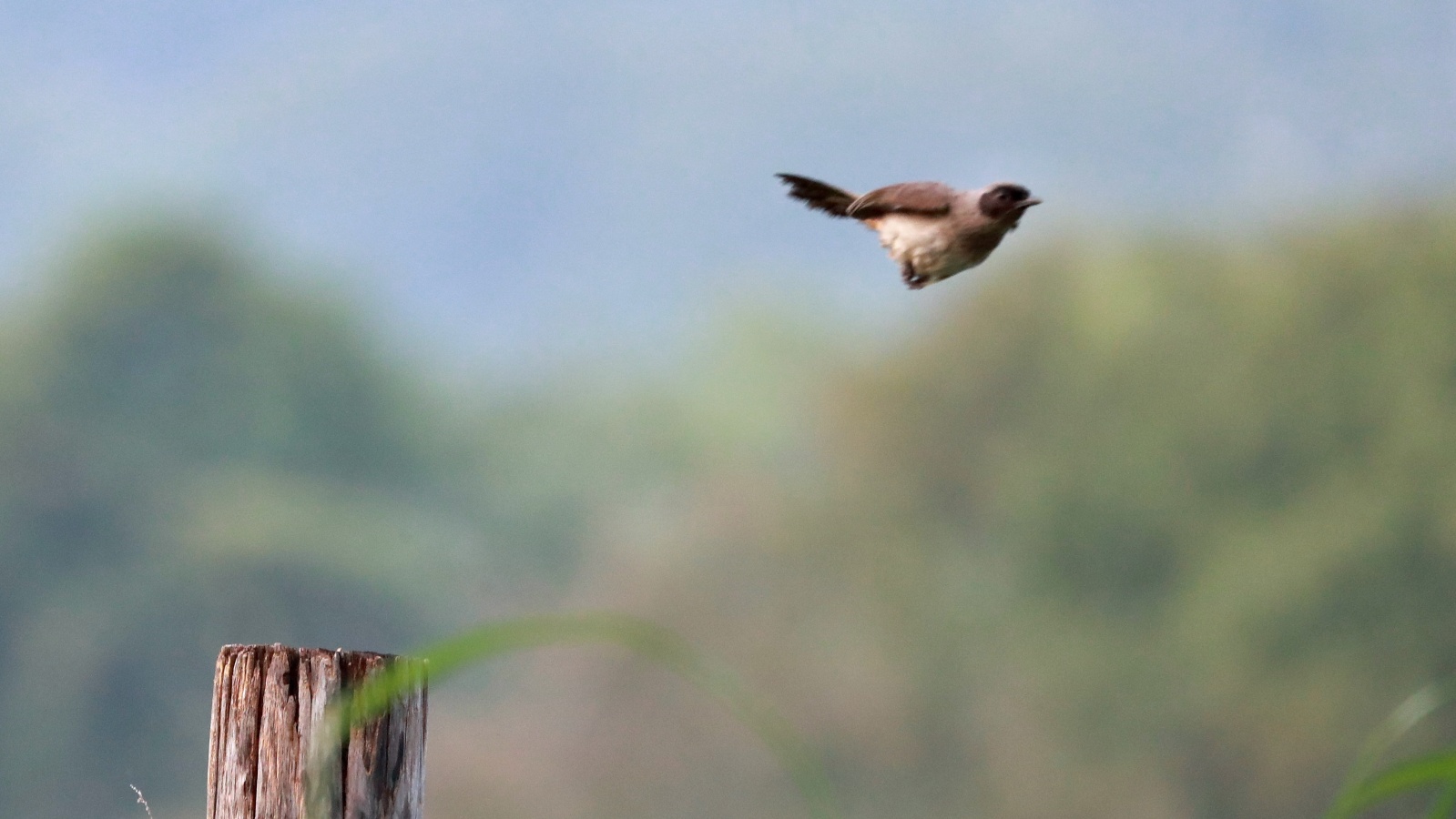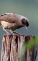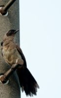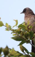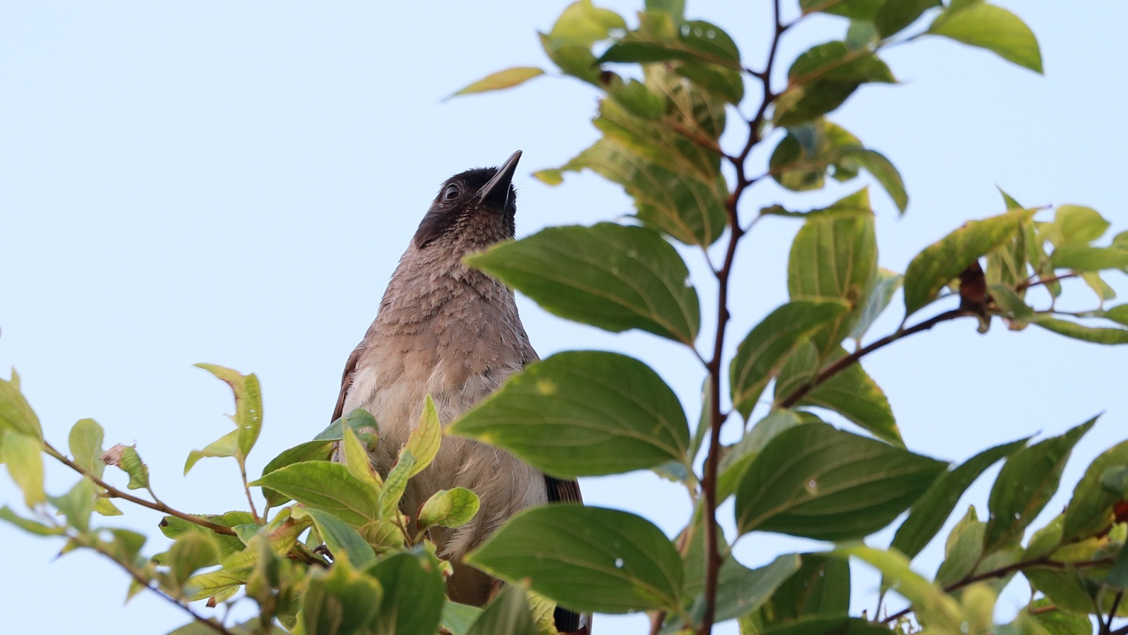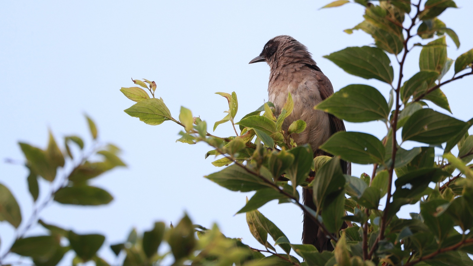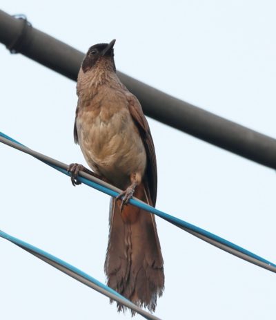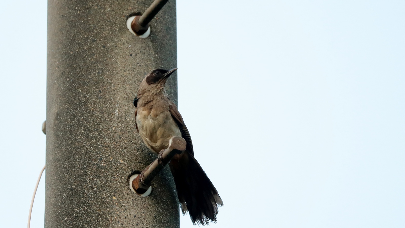 昨日もガングロ君が現われてくれました! しかも最近はたまにですがオヤジ達が散歩の後の休憩で座っているベンチの直ぐ後ろの桜の木や電線にきてくれます~♪  よく引き連れていた普通のガビチョウは一緒に来ないで単独行動のガングロ君です。
