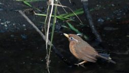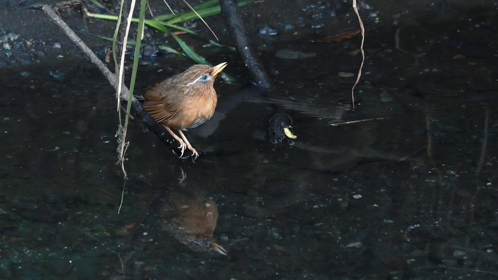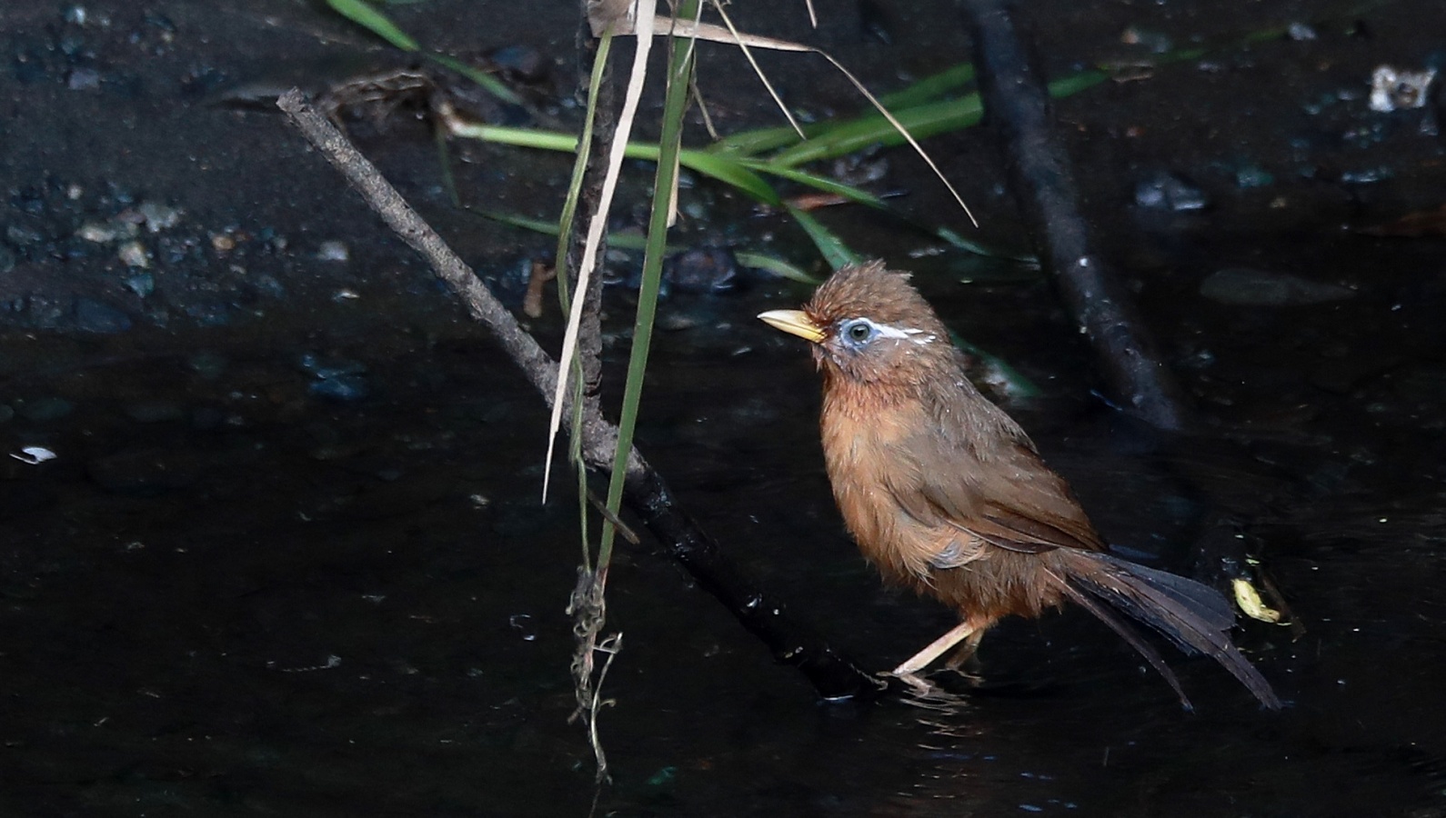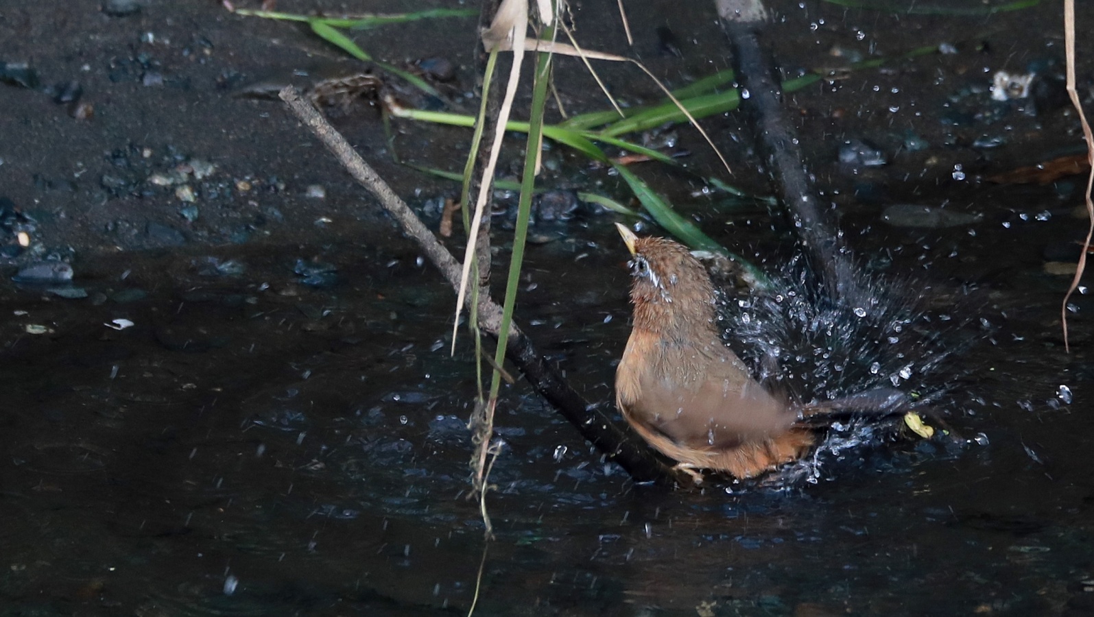 ★おまけ……川の対岸で水浴びをしていたガビチョウ。