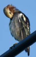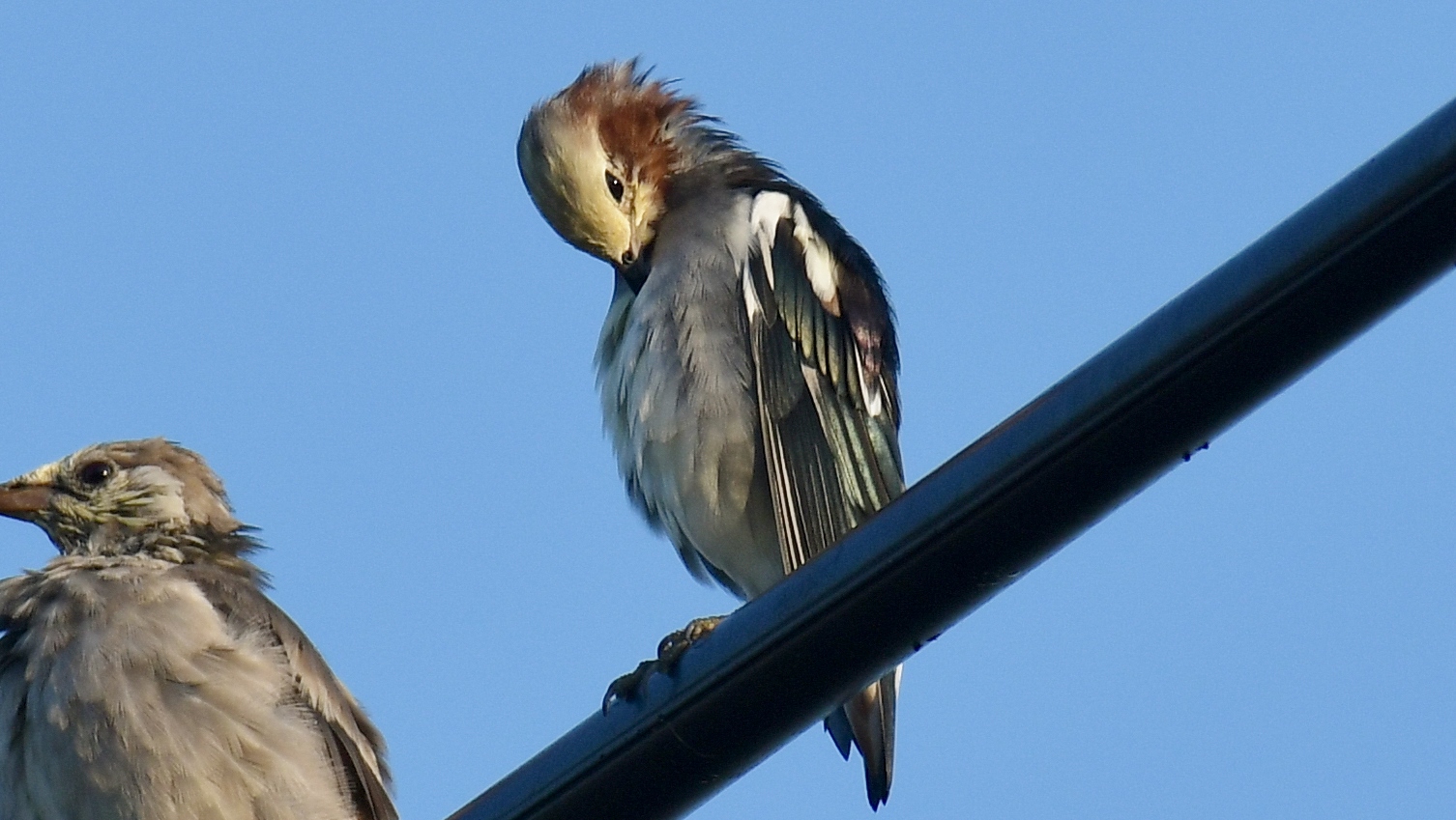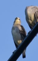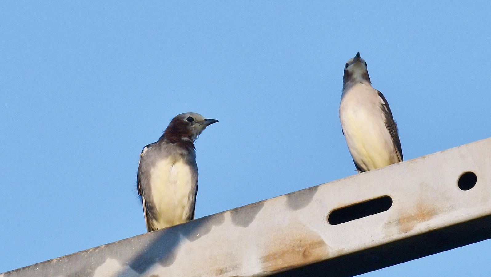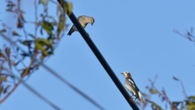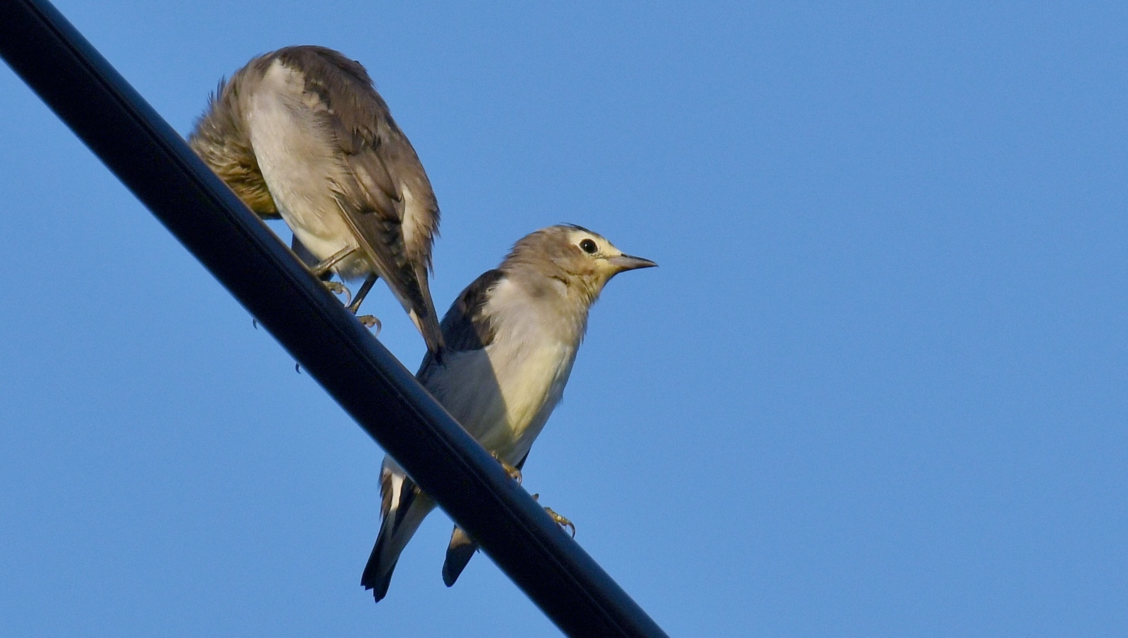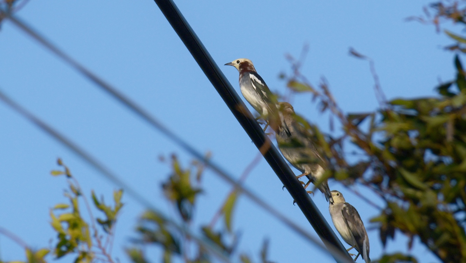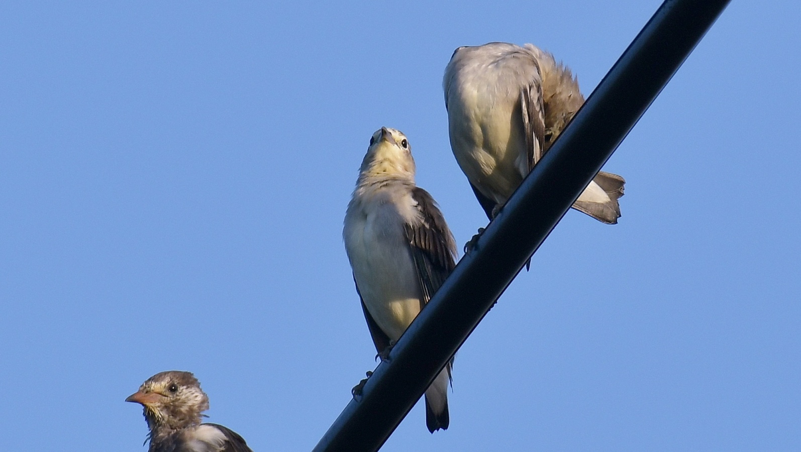 コムクドリの数がだいぶ減った感じでもうほとんど旅立ってしまったのかな?なんて思っていたら……今朝は又、台風に運ばれて戻って来ちゃったのか?~(笑)かなりの数のコムクドリの大群が見れました。 中には普通のムクドリと一緒に行動をしている群れもあったし、
