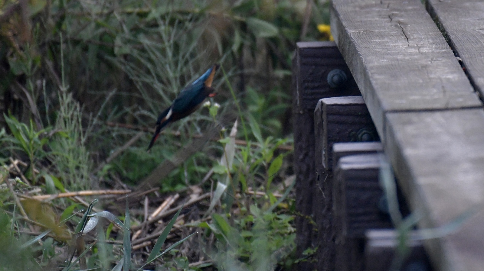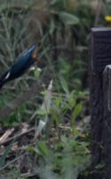 今朝の鳥撮り時には鳥たちの声が賑やかな割になかなか現れてくれず、昨日から入ったジョウビタキ♂が撮れるかと思っていたのにチラッと見かけたり声は聞こえるのに写せる場所に出てくれずやっと撮れたのはだいぶ遠くの空抜け証拠写真程度でした。 代わりに最近見かける木道でのカワセミ君♀~なるべく刺激しないように撮っているせいか?以前より臆病ではなくなってきた気がします。……暗いけど背景は少しは綺麗に映る感じで納得かな。~(笑)……ただこの木道だと飛び込みが写せないのが残念です!