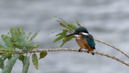 ★今朝の翡翠君♀~木道で何時も見かける個体で今朝は川で餌狩りをしていまいた。