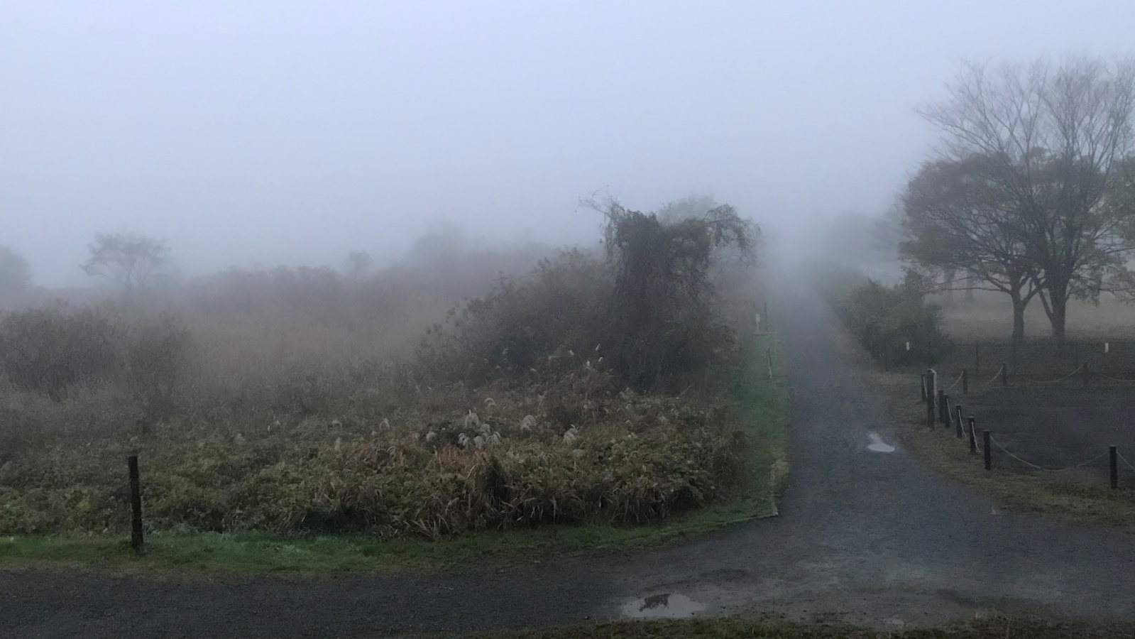 昨日の早朝は霧が凄かった公園です!~でもこの霧って全国的に出ていたようで昼前までもかなり霧がはれずにくもった感じの湘南です。 早朝散歩の夢眠も
