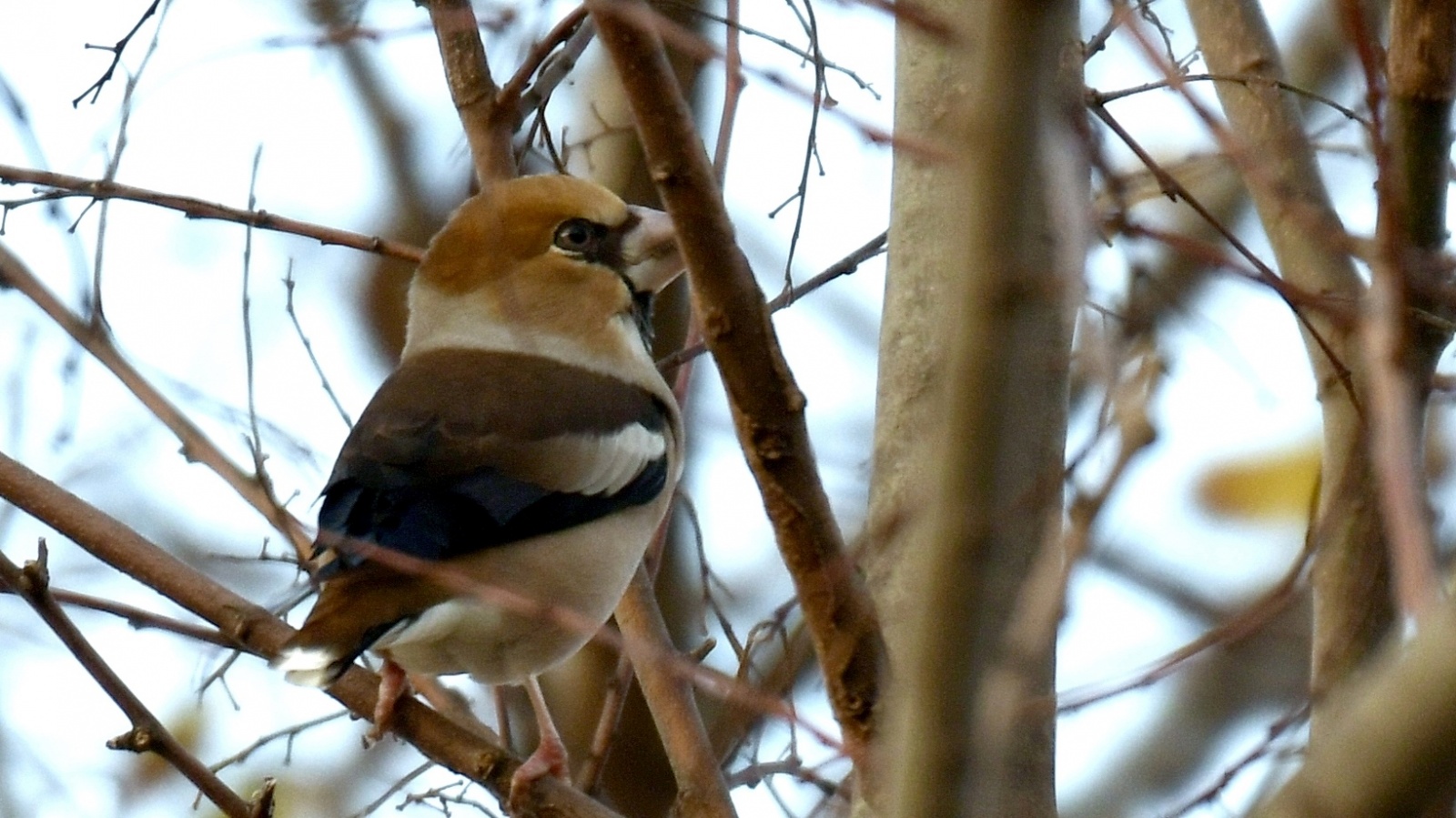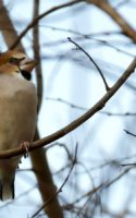 それでも何とか撮れた今朝のカワセミ♀とシメ♂でしたが、相変わらず早朝での暗さから毎朝の解像していない写真を。~(笑)