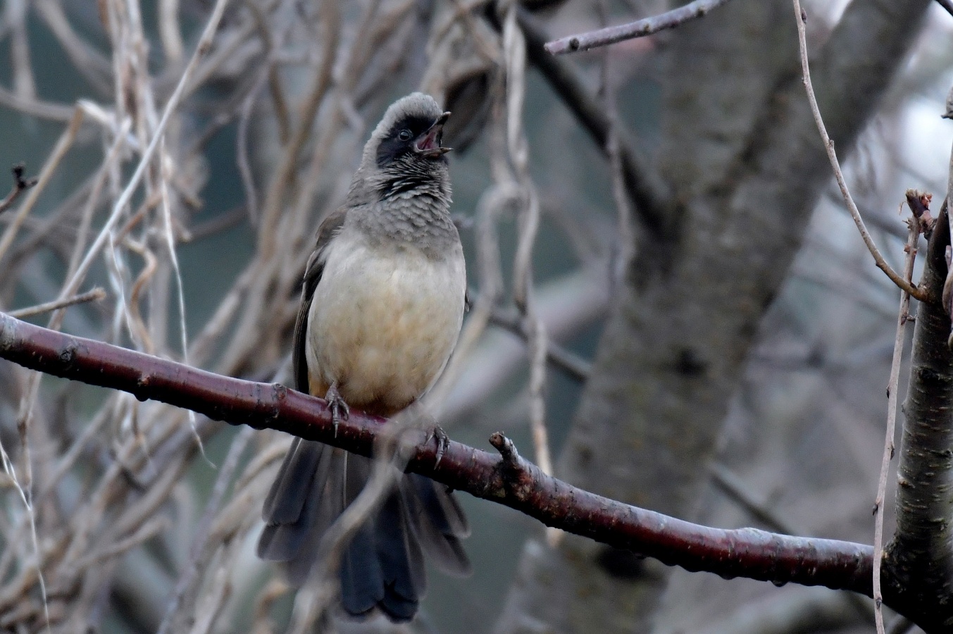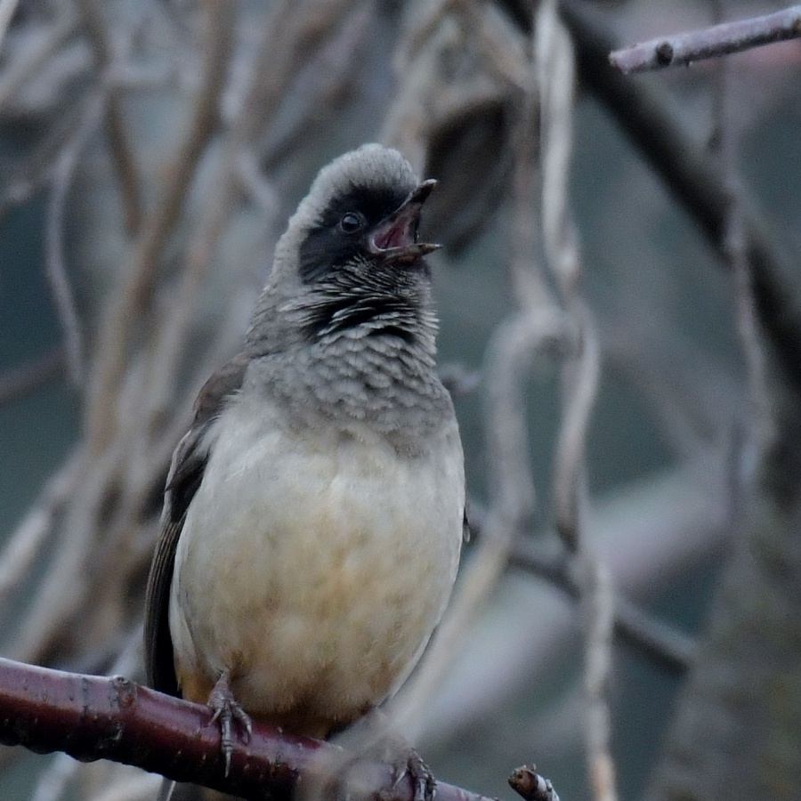 中でもガビチョウとガングロ君の鳴き声はひときわ大きく~(笑)夢眠の散歩の後に鳴いていた場所にまた行ってみたらまだ居てくれました!~♪ ガングロ君は木にいる虫とか昆虫を食べていたのを以前見かけましたが今朝は