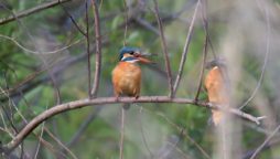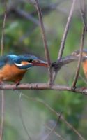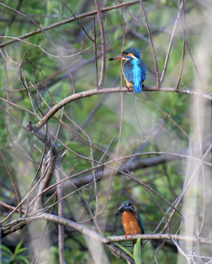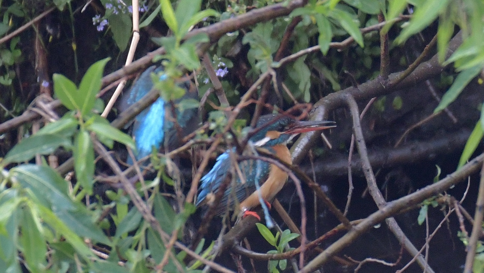 ここのところ公園の川で(後ろめたい気持ちの中”通行禁止の道に早朝は勝手に入っていますが!~笑”)カップルのカワセミが(♀は足輪付き!)時々楽しませてくれます。~♪