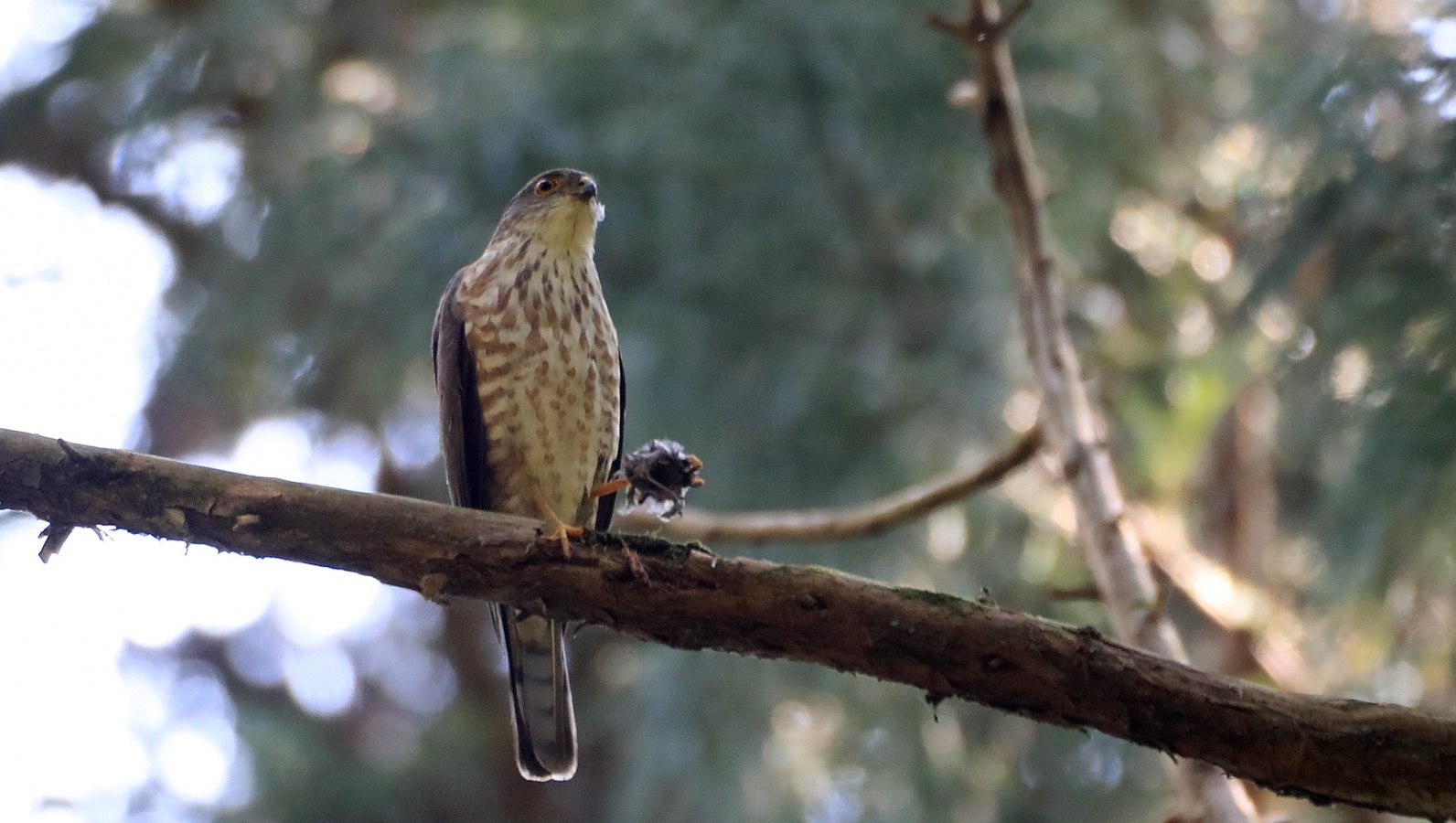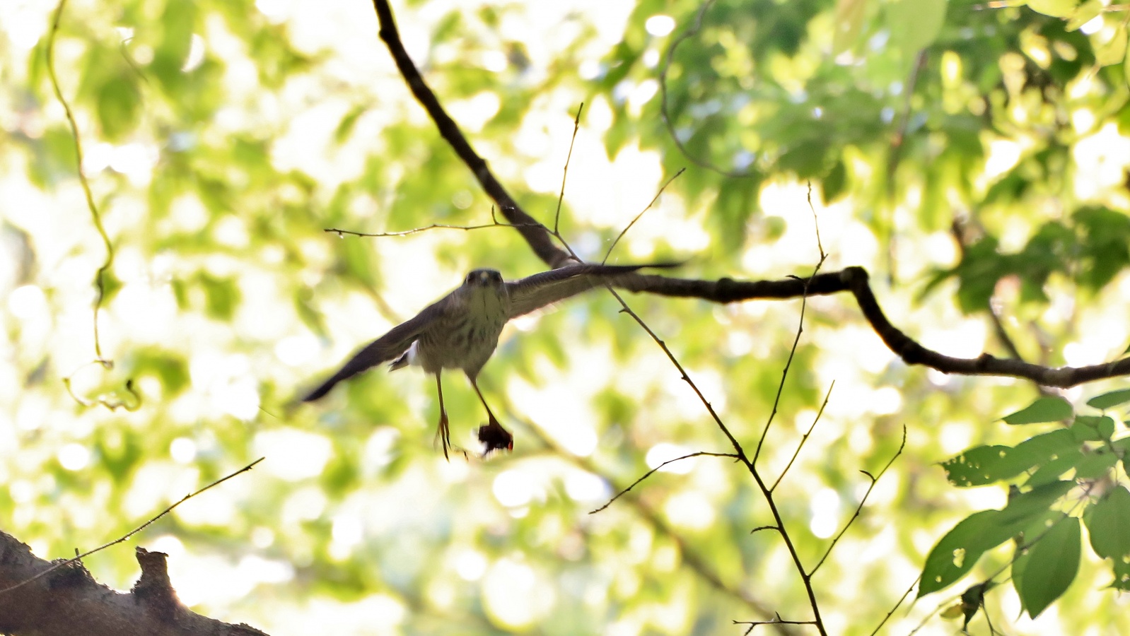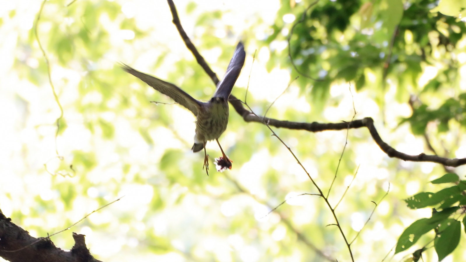 まあ~ツミ♂♀が居るんじゃあ~小鳥は逃げちゃうよね~~(笑)左足で獲物をつかんで飛び回っていまいました。