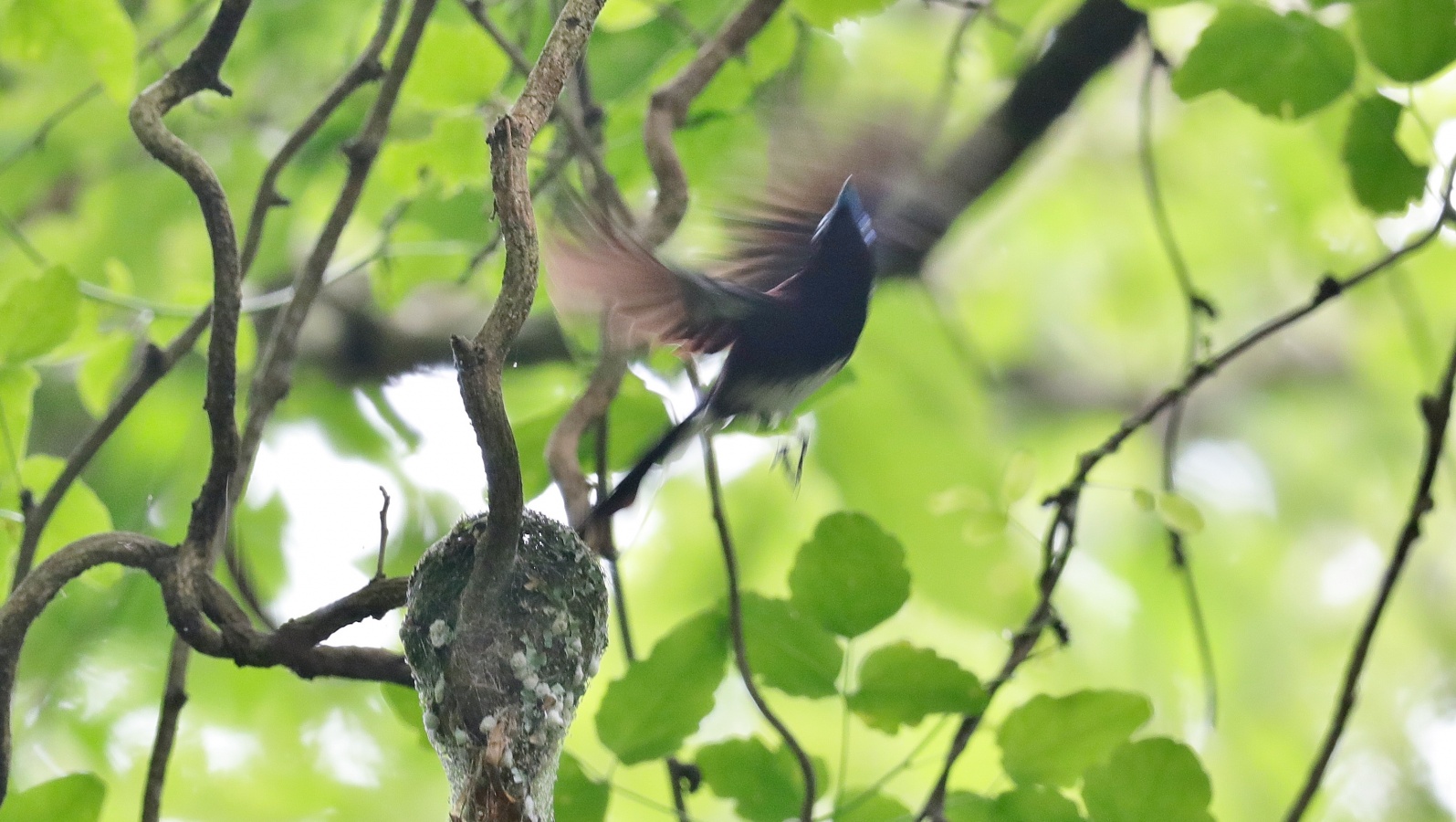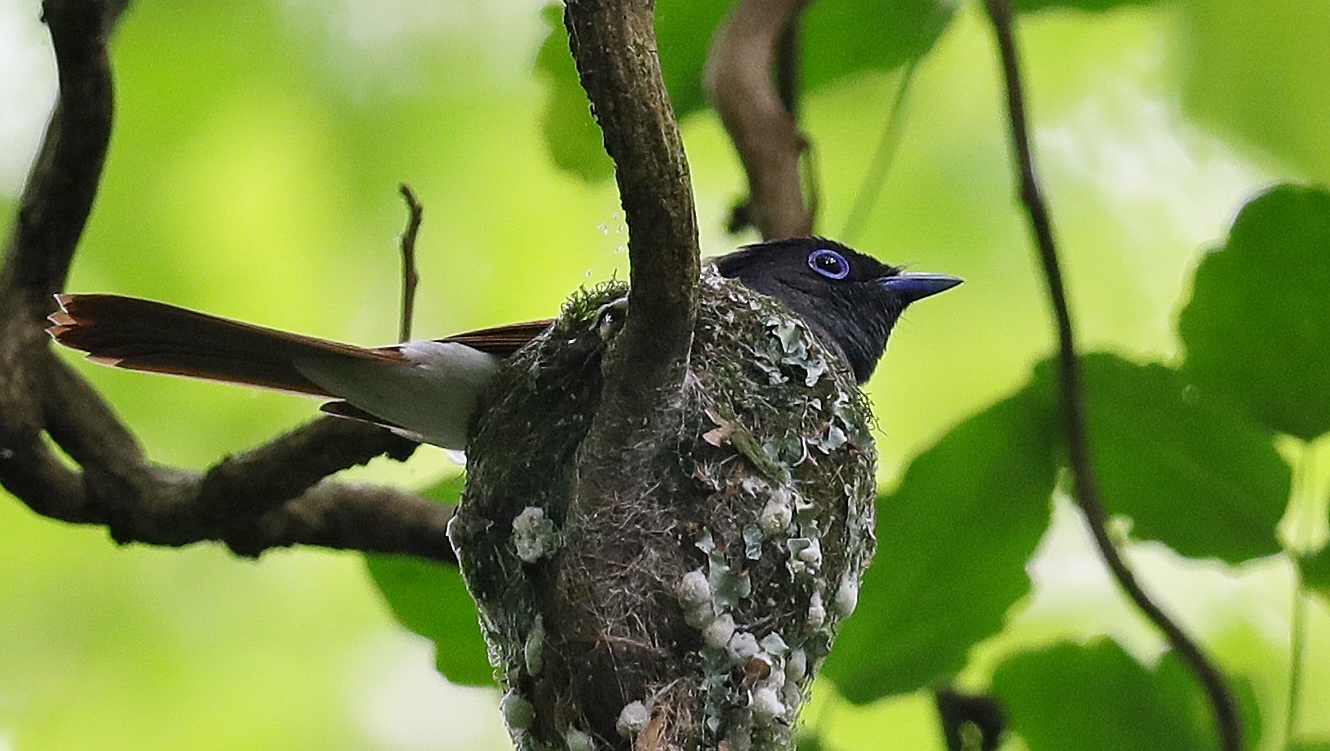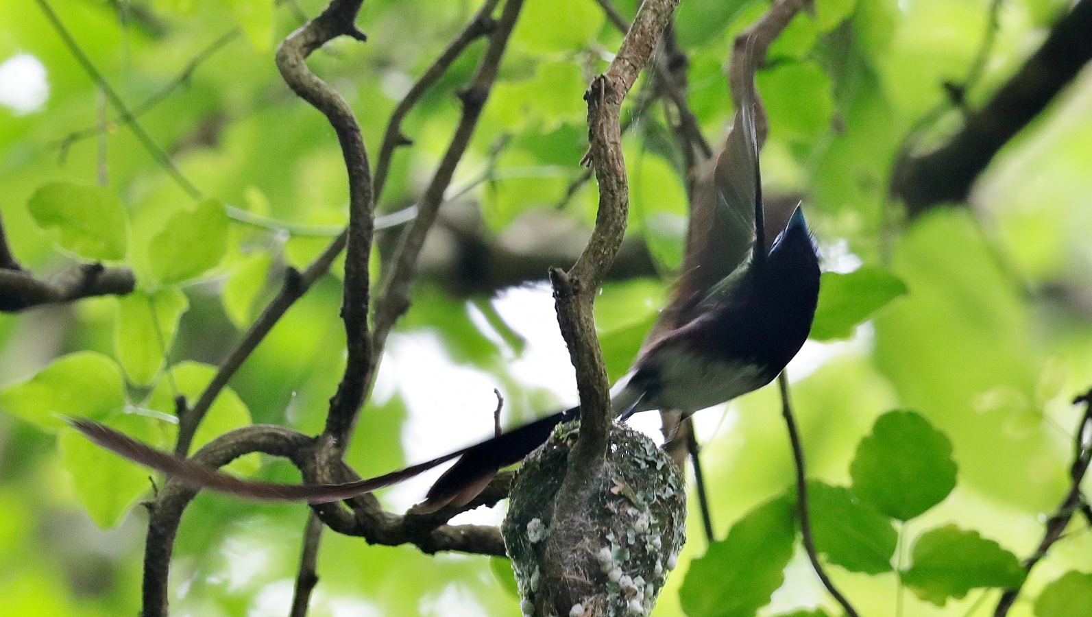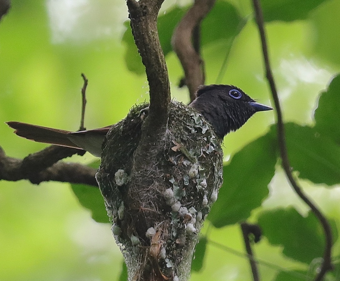 朝の散歩の夢眠です…‥自宅の周りを歩かせました。 サンコウチョウの写真は先日のカメラマンで一杯だった場所での以前に撮った巣の様子です……