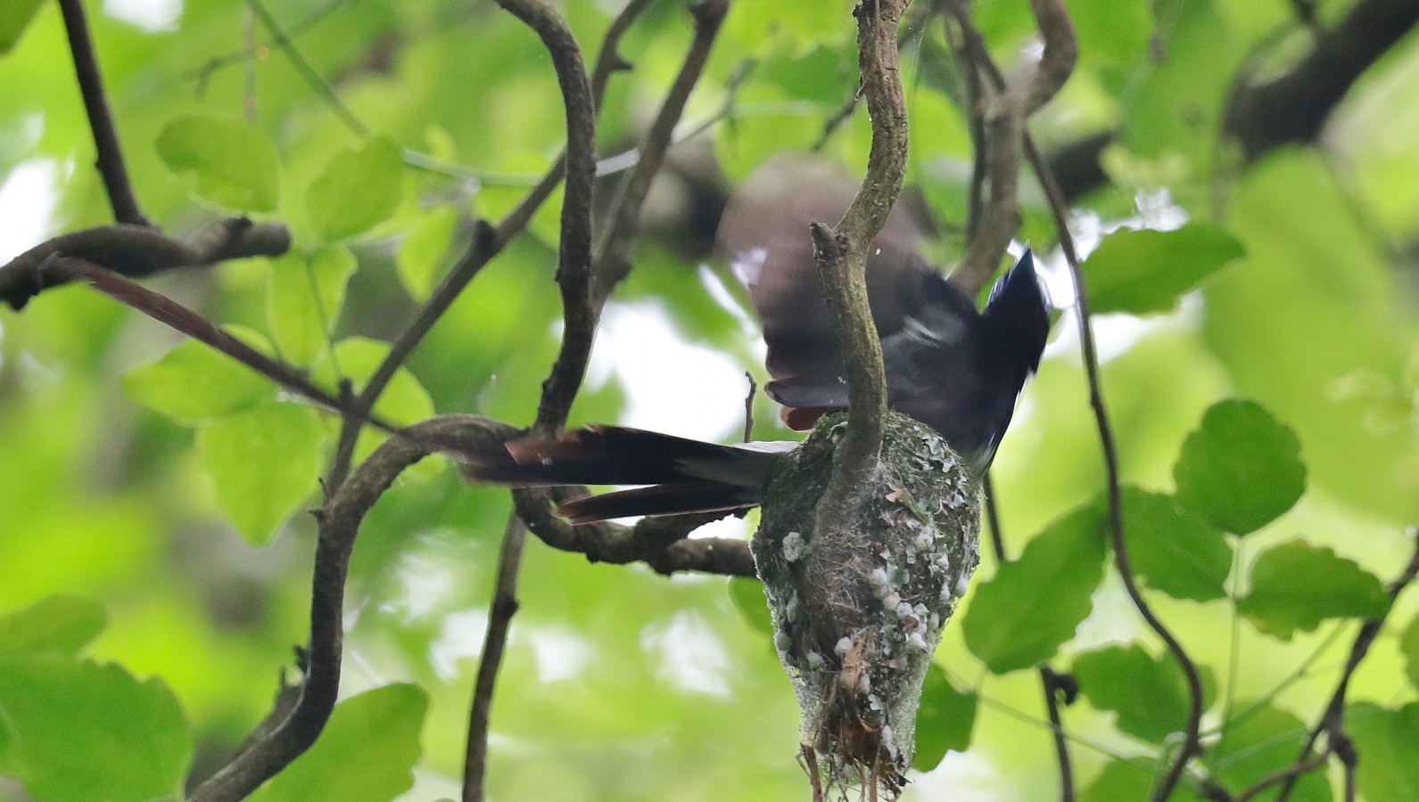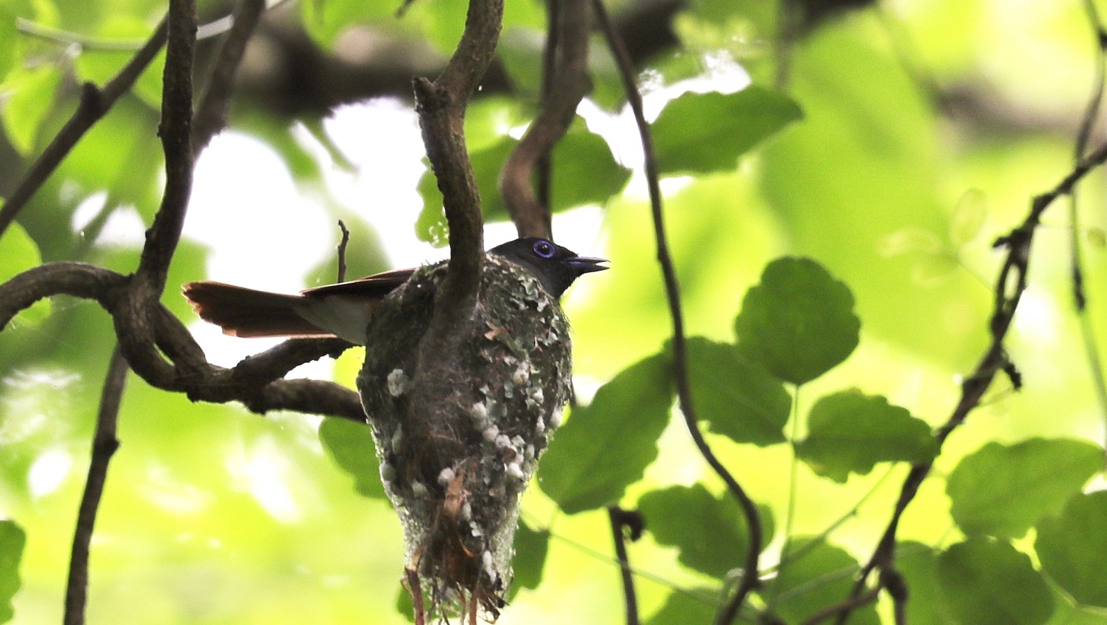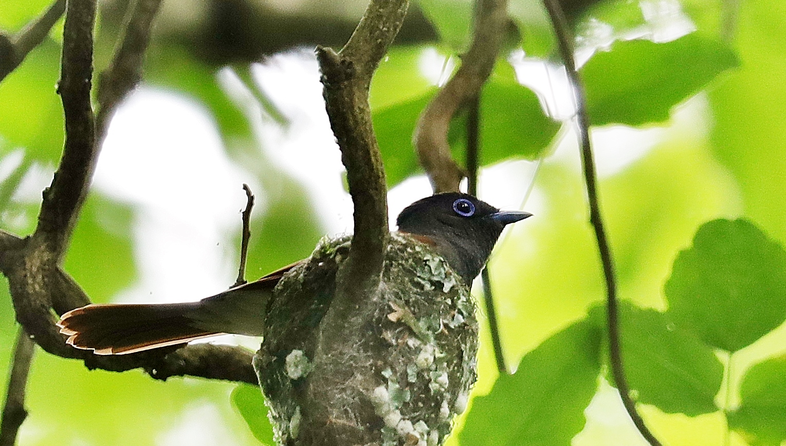 朝の散歩の夢眠です…‥自宅の周りを歩かせました。 サンコウチョウの写真は先日のカメラマンで一杯だった場所での以前に撮った巣の様子です……