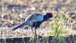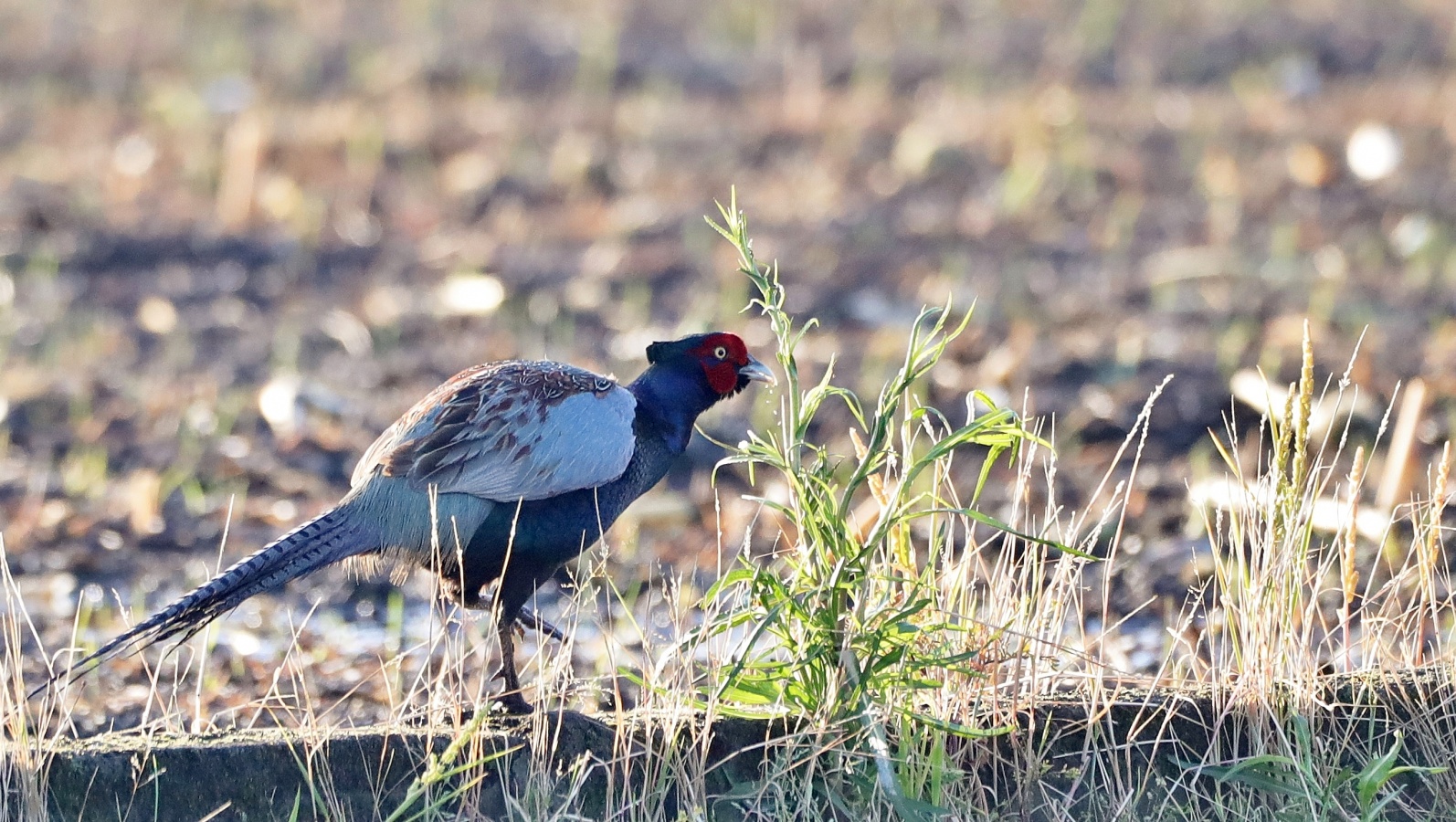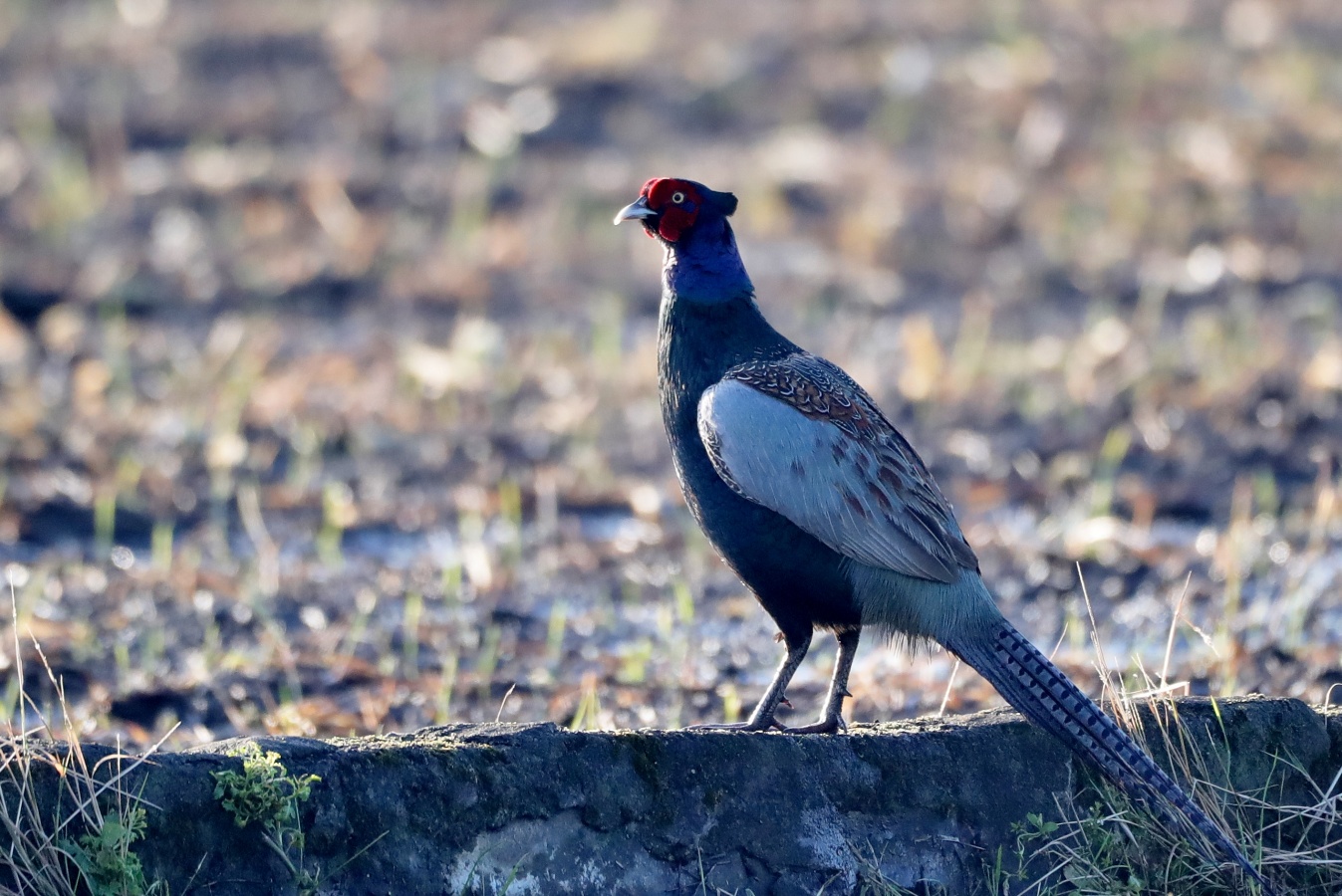 今朝の公園の近くの田圃で……逆光ですが車の中の窓から撮ったキジ!