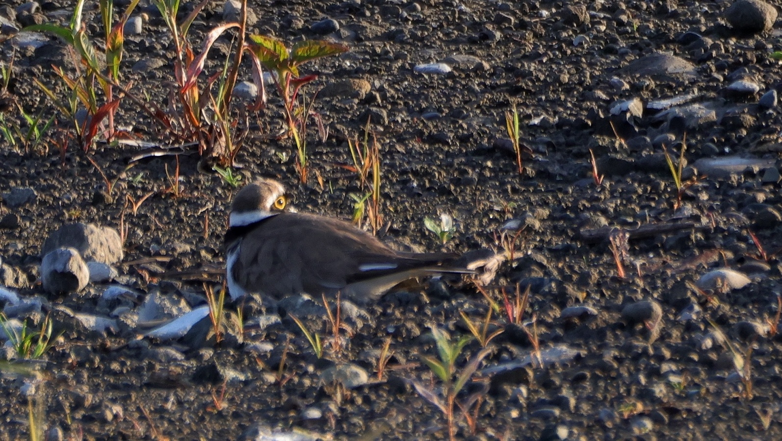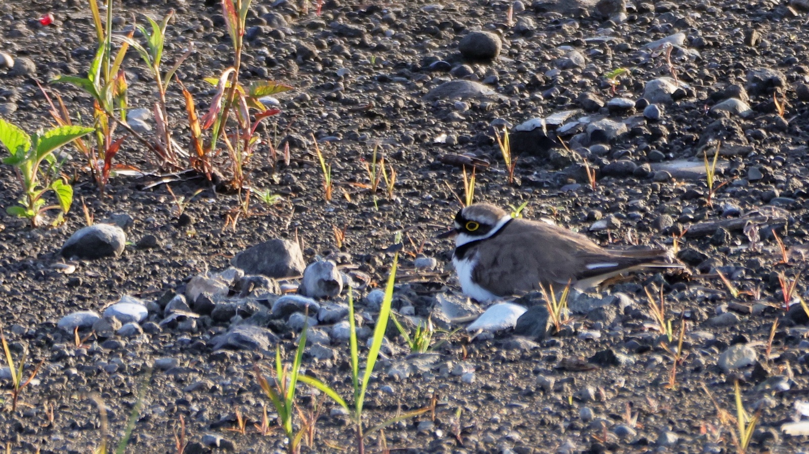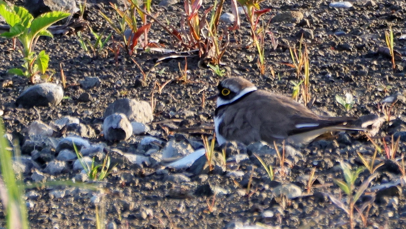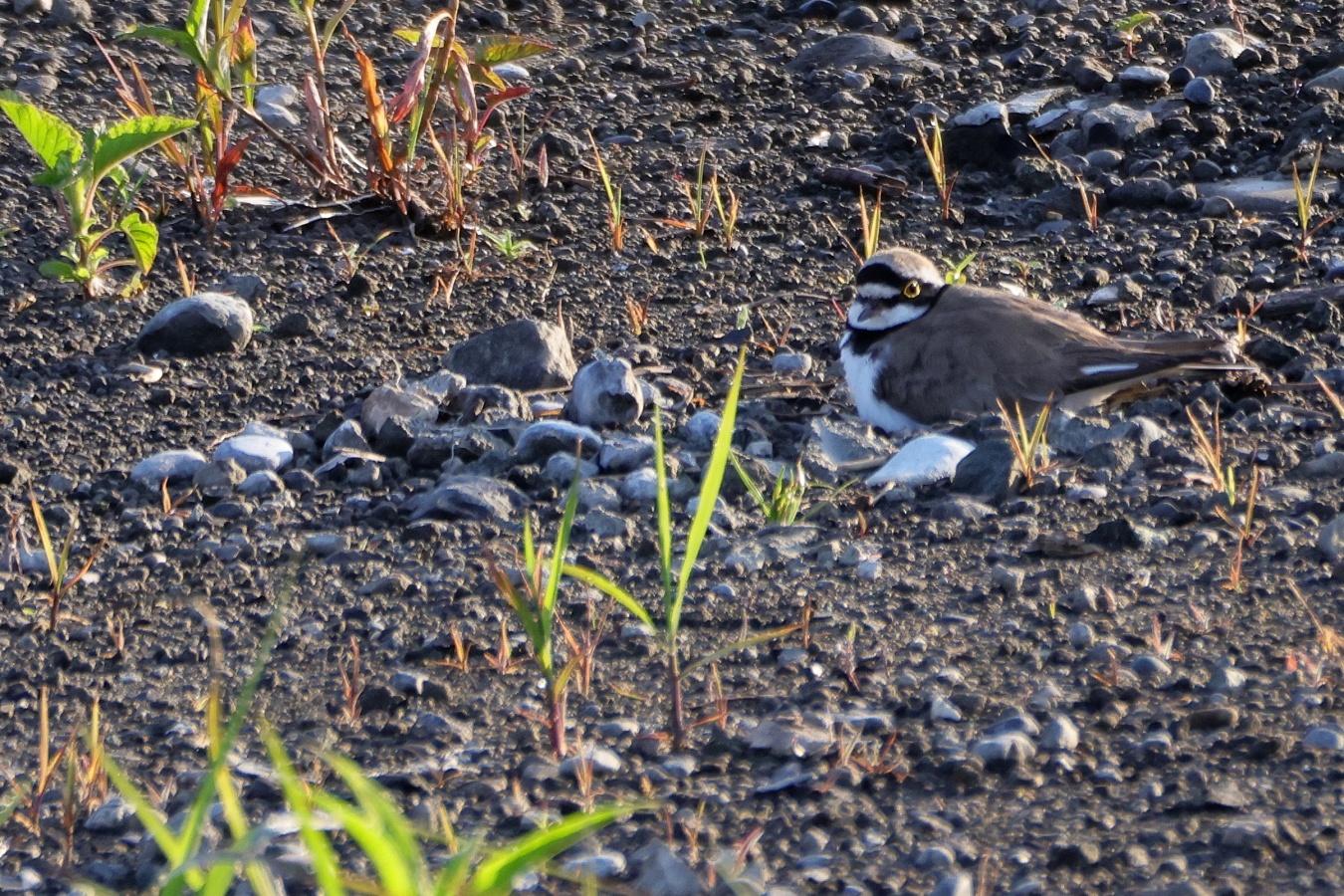 今朝もコチドリの抱卵の様子を見に行ってみました。早朝の5時前は子連れのムクドリが活発に行きかい結構”騒がしくてコチドリがどこだったか分からなくなります。~(笑)