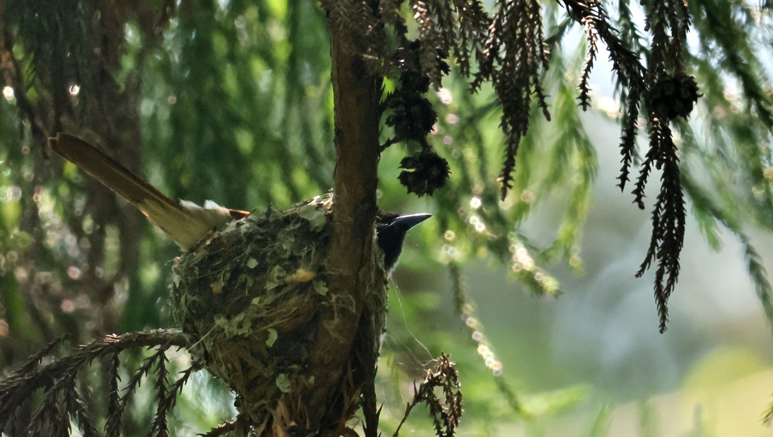 先週の木曜日に撮ったサンコウチョウ~ 先々週とほとんど同じ逆光のアングルですが天気が良すぎてフレアーがどうしても~(汗)