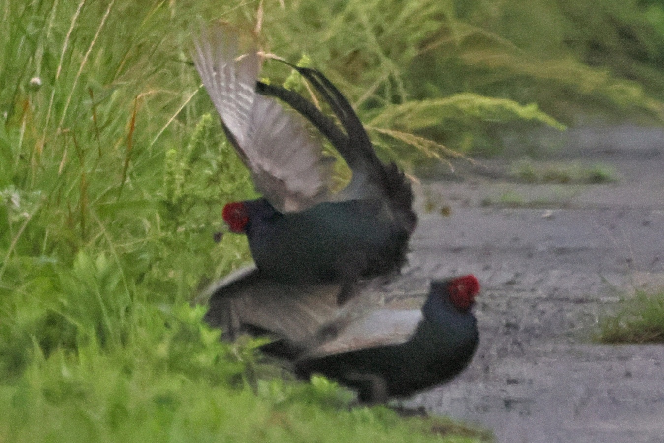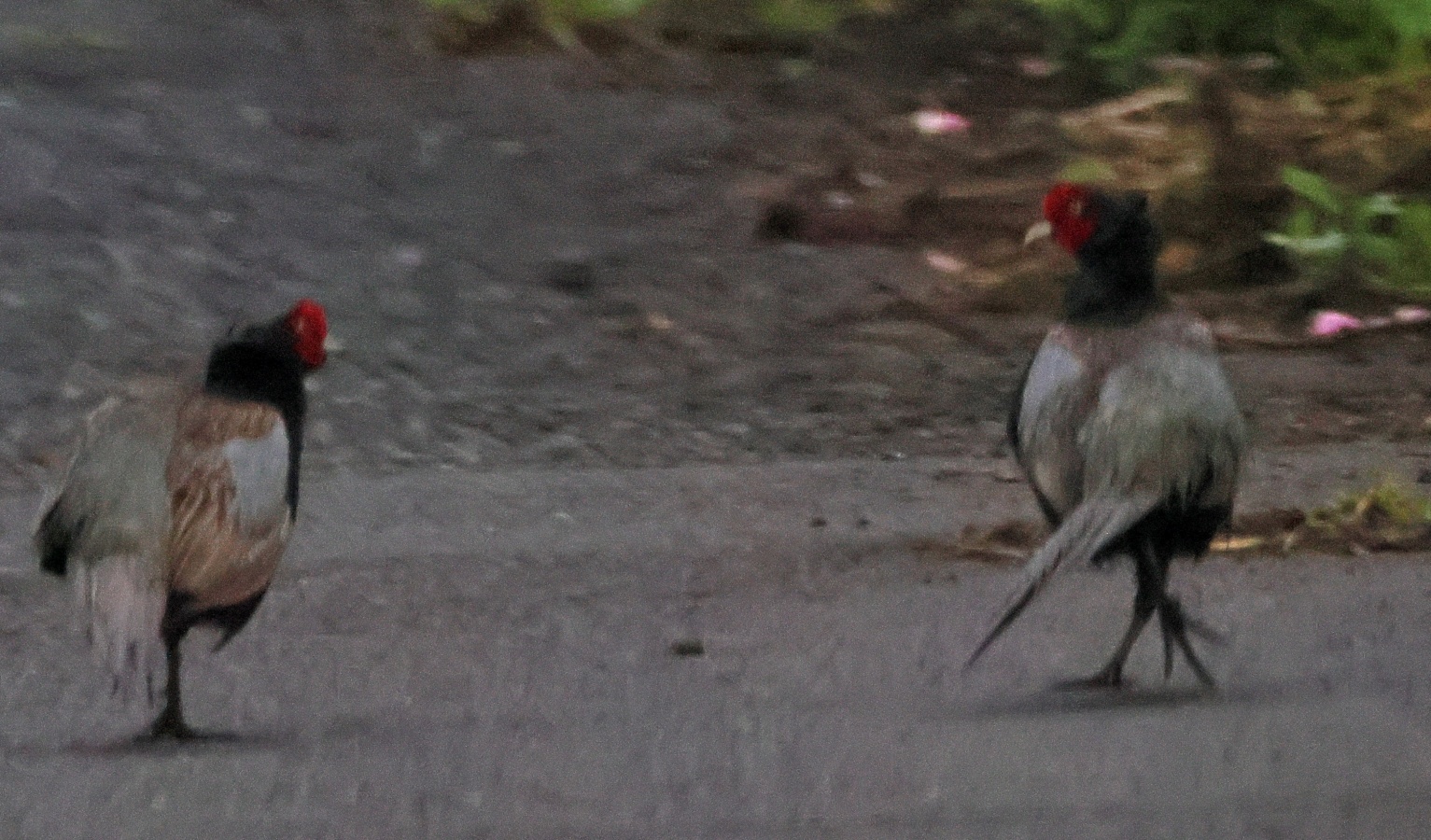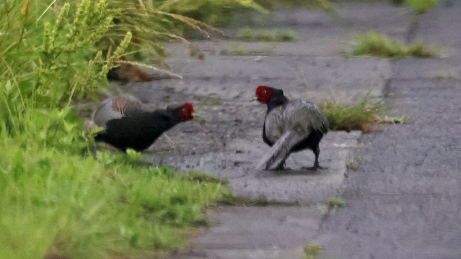 今朝は何時も居るキジの棲み処付近で2羽の♂のキジが縄張り争いか?バトルの最中でした。厚い雲に覆われ暗くてボケボケですが10分以上車の中から観察です!~♪