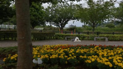 公園に着いたら降り出してしまった雨!しかし南西の空が明るいので15分ほど止むのを待っていましたが、止まずに強く降り出し諦めて会社に向かいました。