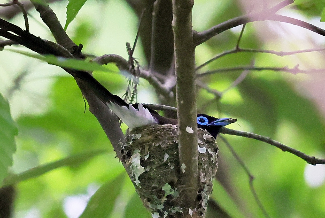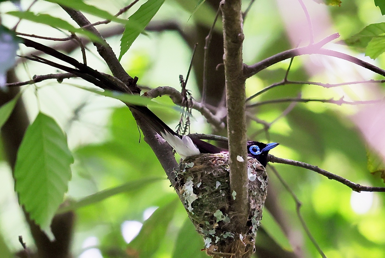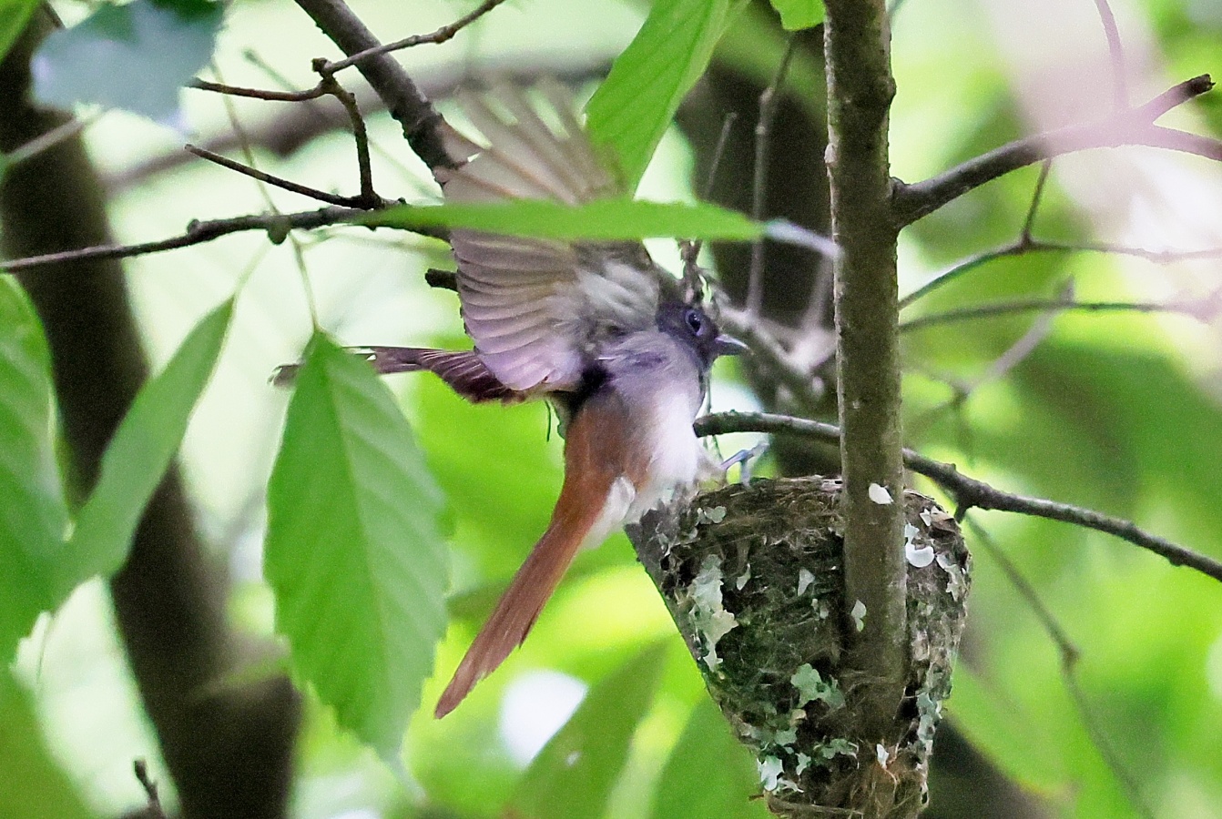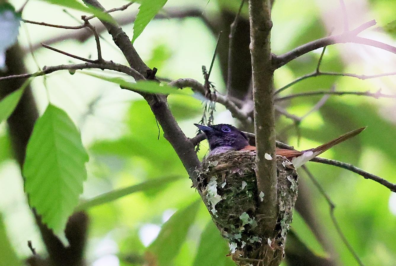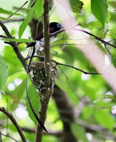 今回の写真も巣で給仕しているサンコウチョウですがまだ前回まで載せた巣とは違う場所の小さくて巣からまだ頭が見えていません! 前回までの巣より近いし~♪