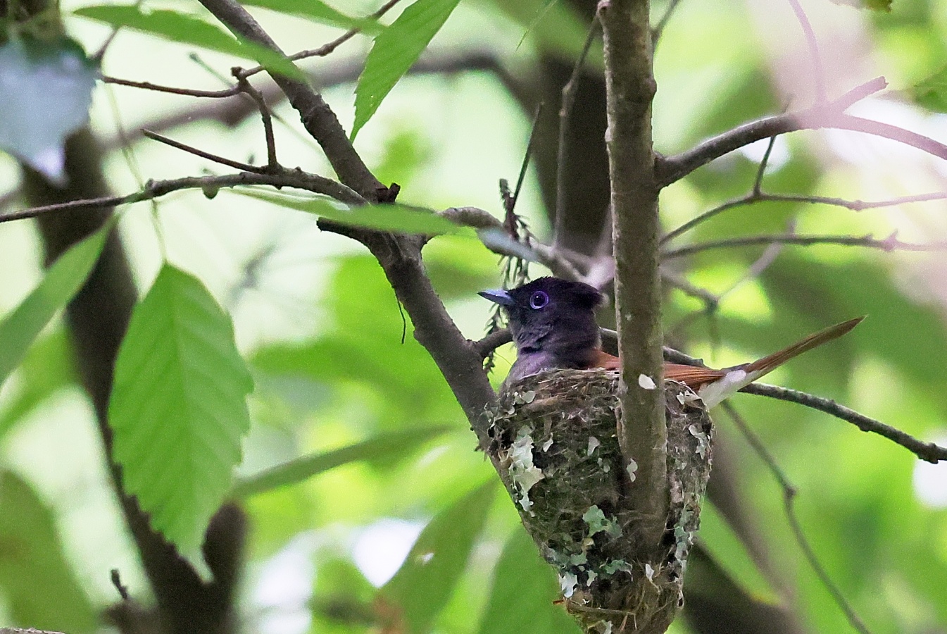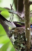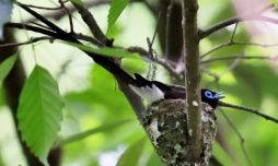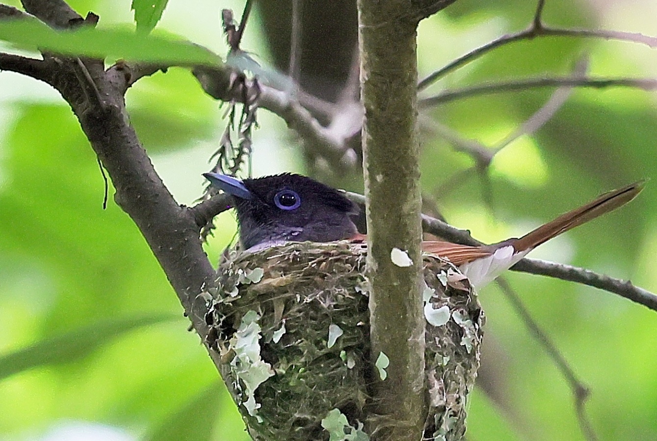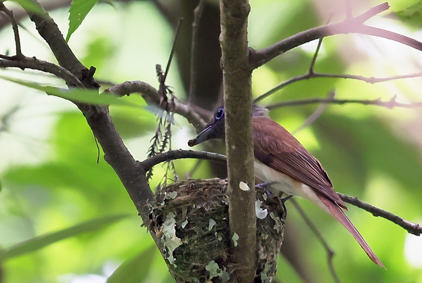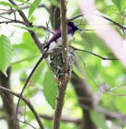 今回の写真も巣で給仕しているサンコウチョウですがまだ前回まで載せた巣とは違う場所の小さくて巣からまだ頭が見えていません! 前回までの巣より近いし~♪
